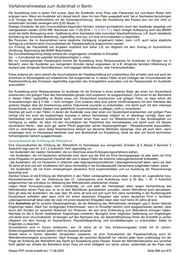 Verfahrenshinweise zum Aufenthalt in Berlin Die Ausstellung setzt in jedem Fall voraus, dass der Ausländer einen Pass oder Passersatz auf zumutbare Weise nicht erlangen kann. Wenn ein Ausländer sich darauf beruft, dass ihm kein Pass ausgestellt wird, hat er Nachweise beizubringen (z.B. Vorlage des Schriftverkehrs mit der Auslandsvertretung), dass die Ausstellung des Passes aus von ihm nicht zu vertretenden Gründen verweigert wird (§ 82 Absatz 1). Etwaige Umstände, die eine Unzumutbarkeit begründen könnten, müssen grundsätzlich durch den Ausländer dargelegt und nachgewiesen werden (OVG NW, Beschluss vom 17.05.2016 – 18 A 951/15 ). Nach richtiger Auffassung auch des BMIBH reicht die bloße Behauptung einer Gefährdung ohne Nachweise oder zumindest Glaubhaftmachung, z.B. durch detaillierte Schilderung der konkreten Bedrohung, regelmäßig nicht aus, um eine Unzumutbarkeit zu begründen. Bei Personen, die im Asylverfahren keine staatliche Verfolgung vorgebracht haben, kann i.d.R. auch keine staatliche Verfolgung und damit keine Unzumutbarkeit der Passbeschaffung angenommen werden. Zur Prüfung der Plausibilität von Angaben empfiehlt sich daher z.B. ein Abgleich mit dem Vortrag im Asylverfahren (Anhörung, Begründung des BAMF-Bescheides). Die Zumutbarkeitsprüfung erfolgt anhand der vorgetragenen Umstände im Einzelfall. Zur -> Zumutbarkeit bei subsidiär Schutzberechtigten s. unten. Bei nur vorübergehender Passlosigkeit kommt die Ausstellung eines Reiseausweises für Ausländer im Übrigen nur in Betracht, wenn der Ausländer aus zwingenden Gründen darauf angewiesen ist (z.B. dringende familiäre Hilfeleistung im Ausland oder dringende Geschäftsreisen, nicht dagegen bloße Besuchs- oder Ferienaufenthalte). Etwas anderes gilt, wenn sowohl die Unzumutbarkeit der Passbeschaffung auf unabsehbare Zeit anhalten wird und auch der Aufenthalt im Bundesgebiet auf unbestimmte Zeit ausgerichtet ist. In diesen Fällen ist bei Vorliegen der Unzumutbarkeit der Passbeschaffung das Ermessen regelmäßig zugunsten des Antragstellers auszuüben und ein Reiseausweis für Ausländer auszustellen. Die Ausstellung eines Reiseausweises für Ausländer für die Einreise in einen anderen Staat, der einen von Deutschland anerkannten und gültigen Pass des Heimatstaates gerade nicht anerkennt, ist ausgeschlossen. Zum einen ist der Betroffene in diesen Fällen regelmäßig im Besitz eines von Deutschland anerkannten und gültigen Pass, so dass schon die Voraussetzungen des § 5 Abs. 1 nicht vorliegen. Zum anderen wäre eine solche Verfahrenspraxis mit dem Interesse des anderen Staates über die Anerkennung solcher Dokumente souverän zu entscheiden, und damit auch mit dem Interesse Deutschlands, zu solchen Staaten eine gedeihliche Zusammenarbeit zu pflegen, nicht zu vereinbaren. Gleiches gilt auch in den Fällen, in denen der Ausländer zwar über einen von Deutschland anerkannten und gültigen Pass verfügt und ihm auch die beabsichtigte Ausreise in seinen Heimatstaat möglich ist, er allerdings vorträgt, dass sein Heimatstaat sich generell außerstande sieht, zeitnah einen Pass auch zur Wiedereinreise in das Bundesgebiet zur Verfügung zu stellen. Es wäre mit den Grundsätzen der Passhoheit des Heimatstaates und damit auch mit dessen souveränem Recht - aber auch ggf. seiner Pflicht gegenüber seinen Staatsangehörigen - Reisedokumente auszustellen, nicht zu vereinbaren, wenn diese Verantwortung faktisch auf deutsche Behörden überginge. Dies gilt auch dann, wenn vorgetragen wird, im Heimatstaat bestünde zwar eine Bereitschaft zur Ausstellung, diese sei aber auf Grund technischer Schwierigkeiten faktisch ausgeschlossen. Unzumutbarkeit der Erfüllung der Wehrpflicht Eine Unzumutbarkeit der Erfüllung der Wehrpflicht im Heimatstaat aus zwingenden Gründen (§ 5 Absatz 2 Nummer 3 AufenthV) liegt nach Nr. 3.3.1.2 AufenthG- VwV regelmäßig vor: - bei Ausländern der zweiten Generation, die vor Abschluss eines Einbürgerungsverfahrens stehen, - bei Ausländern, die mit Deutschen verheiratet sind, wenn aus der Ehe ein Kind hervorgegangen ist oder wenn ein Kind eines Ehegatten im gemeinsamen Haushalt lebt und in diesen Fällen die eheliche Lebensgemeinschaft fortbesteht, - bei Ausländern, die mit Deutschen in ehelicher oder lebenspartnerschaftlichen Lebensgemeinschaft leben, wenn sie über 35 Jahre alt sind und sich mindestens fünf Jahre rechtmäßig in der Bundesrepublik Deutschland aufgehalten haben, sowie - bei Ausländern, die mit ihrem minderjährigen deutschen Kind zusammenleben und zur Ausübung der Personensorge berechtigt sind. Darüber hinaus ist die Erfüllung der Wehrpflicht in den Fällen vorübergehend unzumutbar, in denen ein Jugendlicher bzw. Heranwachsender, der vor Vollendung des 21. Lebensjahres eine Ausbildung nach § 35 Abs. 1 Nr. 3 AufenthG aufgenommen hat und diese zur Ableistung des Wehrdienstes unterbrechen müsste. Liegen diese Voraussetzungen nicht (vollständig) vor und stellt der Heimatstaat allein wegen Nichterfüllung des Wehrdienstes keinen Pass aus, so ist es dem Betroffenen grundsätzlich zumutbar, seinen Wehrdienst auch abzuleisten. Dies gilt etwa bei Ausländern, die zwar über 35 Jahre alt sind und sich auch fünf Jahre rechtmäßig in der Bundesrepublik Deutschland aufhalten aber eben nicht mit einem deutschen Ehegatten oder einem deutschen Kind in familiärer Lebensgemeinschaft leben oder die zwar mit einem deutschen Ehegatten leben aber noch keine 35 Jahre alt sind. Eine Ausnahme gilt für syrische Staatsangehörige, die die Ableistung des Wehrdienstes verweigert und in Syrien lebende Angehörige haben. Nach hier vorliegenden Erkenntnissen kann im Einzelfall nämlich nicht ausgeschlossen werden, dass durch den Kontakt zur syrischen Botschaft von Personen, die sich einer Einberufung zum Wehrdienst entzogen haben, Nachteile für die in Syrien verbliebenen Angehörigen entstehen. Bezüglich einer möglichen Gefährdung von Angehörigen und damit einer Unzumutbarkeit