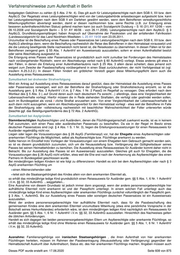Verfahrenshinweise zum Aufenthalt in Berlin Die Reiseausweise für Ausländer, Flüchtlinge und Staatenlose werden seit 01.11.2007 grundsätzlich durch die Bundesdruckerei gedruckt. Seit dem 29.06.2009 sind dabei der Bundesdruckerei neben dem Lichtbild auch Fingerabdrücke des künftigen Reiseausweisinhabers zu übermitteln, was ausschließlich auf elektronischem Weg erfolgt. Bei der Aushändigung durch die ABH ist der Betroffene durch ein entsprechendes Hinweisblatt darauf aufmerksam zu machen, dass eine Neuausstellung rechtzeitig vor Ablauf (d.h. 10 Wochen vorher) zu beantragen ist. Zu beachten ist, dass eine Verlängerung des Reiseausweises mit biometrischen Merkmalen nicht möglich ist. Die Ausstellung eines Reiseausweises ohne Speichermedium als "vorläufiger Reiseausweis" kommt nur ausnahmsweise in Betracht (insofern zu eng Nr. 3.3.1.10. AufenthG-VwV). Die Gültigkeitsdauer darf ein Jahr nicht überschreiten, hierin ist eine etwaige Verlängerung bereits eingerechnet. Eintrag "Personalien beruhen auf eigenen Angaben" Gemäß § 4 Abs. 6 Satz 1 kann der Eintrag „Personalien beruhen auf eigenen Angaben“ in den Reiseausweis für Ausländer genommen werden. Bei der Entscheidung, ob der Eintrag vorgenommen wird, handelt es sich um eine Ermessensentscheidung. Das Ermessen ist in der Regel zugunsten des Eintrags auszuüben, wenn keinerlei belastbare Identitätsnachweise vorliegen, z.B. wenn im Asylverfahren keinerlei Identitätsnachweise vorgelegt werden und subsidiärer Schutz zuerkannt wird. Gemäß § 4 Abs. 6 Satz 2 kann der Eintrag auch in einem Reiseausweis für Staatenlos bzw. Flüchtlinge vorgenommen werden, wenn ernsthafte Zweifel an den Identitätsangaben des Antragstellers bestehen. Für ernsthafte Zweifel an den Angaben reicht der bloße Umstand, dass keinerlei Identitätsnachweise vorgelegt wurden nicht. Vielmehr müssen konkrete Anhaltspunkte, z.B. bei einer polizeilichen Kontrolle aufgefundene Urkunden, die auf eine andere Identität hindeuten, vorliegen. Kinderreiseausweise Kinder bis zur Vollendung des 12. Lebensjahres erhalten einen Reiseausweis ohne Speichermedium, der höchstens 6 Jahre, längstens jedoch bis zur Vollendung des 12. Lebensjahres, gültig sein darf. Daraus folgt, dass Kinder nicht mehr in die Reiseausweise ihrer Eltern eingetragen werden. § 4 Abs. 1 S. 3 2.HS sieht auch die Möglichkeit der Ausgabe von Passersatzpapieren mit Speichermedium an Kinder vor Vollendung des 12. Lebensjahres in begründeten Fällen vor, Anwendungsfälle hierfür werden insbesondere bei nachgewiesenen Reisen oder neu auszustellendem Reiseausweis kurz vor dem 12. Geburtstag gesehen. Erlaubt ist eine Antragsentgegennahme von bis zu sechs Monaten vor diesem Datum. Aus Gründen der Verwaltungseffizienz kann für Kinder ab Vollendung des 6. Lebensjahres ein Passersatzpapier mit Speichermedium ausgestellt werden, sofern sie einen elektronischen Aufenthaltstitel erhalten. Auch die Kinderreiseausweise sind mit einem Lichtbild zu versehen; dies gilt unabhängig vom Lebensalter des Kindes, also auch bei einem Säugling. Zu den besonderen Anforderungen an Lichtbilder von Kindern, Kleinkindern und Säuglingen wird auf die von der Bundesdruckerei herausgegebene Foto-Mustertafel für Personaldokumente verwiesen. Soll im Ausnahmefall ein biometrischer Reiseausweis für ein Kind unter 6 Jahren ausgestellt werden, sind keine Fingerabdrücke zu nehmen. Kinderreiseausweise, die vor dem 01.11.2007 ohne Lichtbild ausgestellt wurden, behalten nach der Übergangsregelung des § 18 Abs. 1 der Verordnung zur Durchführung des Passgesetzes vom 19.10.2007 für den jeweiligen Gültigkeitszeitraum ihre Geltung. Merke: Der Pass muss vom Kind unterschrieben werden, wenn es zum Zeitpunkt der Beantragung des Passes das 10. Lebensjahr vollendet hat. Dieses PDF wurde erstellt am: 17.06.2020 Seite 604 von 875