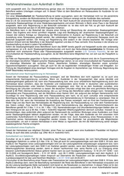 Verfahrenshinweise zum Aufenthalt in Berlin nicht ausgestellt wird. Zur Glaubhaftmachung genügt etwa ein Schreiben der Staatsangehörigkeitsbehörden, dass der Betroffene weitere Unterlagen vorlegen soll. In diesen Fällen ist dem Betroffenen ein Reiseausweis für Ausländer für ein Jahr auszustellen. Von einer Unzumutbarkeit der Passbeschaffung ist weiter auszugehen, wenn der Heimatstaat nicht nur die persönliche Antragstellung, sondern die Wohnsitznahme für einen längeren Zeitraum verlangt und der Ausländer dies nachweist. Dies ist z.B. bei ukrainischen Staatsangehörigen nicht der Fall. Nach Auskunft der ukrainischen Botschaft erhalten passlose ukrainische Staatsangehörige mit einer Niederlassungserlaubnis und einem Wohnsitz in Berlin einen Pass in der Botschaft ausgestellt, wenn eine Registrierung in der Botschaft vorhanden ist. Ist dies nicht der Fall, so gilt nach Auskunft der ukrainischen Botschaft seit dem 01.09.2005 folgendes Verfahren: Der Betroffene kann in der Botschaft der Ukraine einen Antrag auf Überprüfung der ukrainischen Staatsangehörigkeit stellen. Das Ergebnis wird immer schriftlich mitgeteilt. Liegt eine Bestätigung der ukrainischen Staatsangehörigkeit vor, müssen drei weitere Anträge zur Überprüfung der Wohnsitznahme im Ausland, auf Registrierung in der Botschaft und Ausstellung eines Reisepasses gestellt werden. Bei vollständigen Anträgen kann ein ukrainischer Reisepass durch die Botschaft ausgestellt werden. Der Antrag auf Registrierung wird sodann in der Ukraine bearbeitet. Bei Vorlage einer positiven Antwort wird der Betroffene in der Botschaft registriert und dies im Pass vermerkt. Eine Ausreise in die Ukraine zur Passbeschaffung ist damit in jedem Fall entbehrlich. Sofern die Staatsangehörigkeit eines Betroffenen durch das BAMF bereits geprüft und festgestellt wurde oder anderweitig nachgewiesen ist (z.B. durch Staatsangehörigkeitsurkunde) und durch das Herkunftsland ausnahmslos für Einreise und Aufenthalt nicht anerkannte Pässe oder Passersatzpapiere ausgestellt werden (z.B. Somalia Passinfo), ist von der Unzumutbarkeit der Passbeschaffung auszugehen, da der Betroffene keine Möglichkeit hat, von sich aus die Passpflicht zu erfüllen. Da Fälle von Repressalien gegenüber in Syrien verbliebenen Familienangehörigen bekannt sind, die im Zusammenhang mit der ehemaligen beruflichen Tätigkeit syrischer Staatsangehöriger stehen, ist von einer Unzumutbarkeit der Passbeschaffung für ehemalige Mitarbeiter der syrischen Polizei, desertierten Soldaten, ehemaligen Beamten sowie syrischen Oppositionsmitgliedern auszugehen. Dies gilt auch für die sie begleitenden minderjährigen Kinder und Ehegatten. Zur Prüfung der Glaubhaftigkeit eines derartigen Vortrages sind die Angaben im Asylverfahren (vgl. Anhörung, Begründung des BAMF-Bescheides) heranzuziehen. Zumutbarkeit einer Nachregistrierung im Heimatstaat Soweit der Heimatstaat die Passausstellung verweigert, weil der Betroffene dort nicht registriert ist, ist auch eine entsprechende Nachregistrierung zumutbar. Wenn ein Ausländer in der Vergangenheit über seine Identität und Staatsangehörigkeit getäuscht hat, kann eine Passausstellung bzw. eine zuvor erforderliche Nachregistrierung durch den Heimatstaat daran scheitern, dass der Ausländer und insbesondere seine Kinder in deutschen oder ausländischen Personenstandsurkunden unter falschen Personalien eingetragen sind. Hier ist es dem Ausländer zumutbar, eine Berichtigung der Urkunden vornehmen zu lassen. Bei deutschen Urkunden erfolgt dies über eine gerichtliche Berichtigung gemäß § 48 PStG (Stichwort: Umbeurkundung), die u.a. auf Antrag des Betroffenen selbst erfolgen kann. Verweigert der Heimatstaat eine Passausstellung, weil der Betroffene einen Namen führt, der aufgrund des dortigen Namensrechts nicht Grundlage für eine Registrierung oder eine Passausstellung sein kann, ist es auch zumutbar eine entsprechende Berichtigung deutscher oder ausländischer Urkunden bzw. eine Namensänderung im Heimatstaat zu veranlassen. Dies ist etwa dann der Fall, wenn der Heimatstaat die Ausstellung des Passes verweigert, weil ein Kind den Familiennamen der Mutter trägt und das Recht des Heimatstaates die Registrierung bzw. die Passausstellung nur unter dem Familiennamen des Vaters zulässt. Zwar berührt die Obliegenheit einer Namensänderung das allgemeine Persönlichkeitsrecht des Betroffenen gemäß Art. 2 Abs. 1 i.V.m. Art. 1 Abs. 1 GG. Namensänderungen und Urkundenberichtigungen bleiben aber vor dem Hintergrund der aus § 48 Abs. 3 Satz 1 AufenthG folgenden Mitwirkungspflichten dennoch zumutbar. Insoweit ist zu berücksichtigen, dass andernfalls allein aufgrund der Namenswahl die rechtlichen Bindungen eines Ausländers zum Staat seiner Staatsangehörigkeit faktisch abgebrochen würden, mit der Folge, dass dem Ausländer ein ihm ansonsten nicht zustehendes Aufenthaltsrecht im Bundesgebiet gewährt werden bzw. durch Ausstellung eines Reiseausweises in die Passhoheit seines Heimatstaates eingegriffen werden müsste. Der Ausländer hat grundsätzlich alle Möglichkeiten auszuschöpfen, um sich in seinem Heimatstaat in einer Weise zu registrieren, die ihm die Wahrnehmung seiner dortigen staatsbürgerlichen Rechte ermöglicht. Zumutbarkeit eines Kopftuchs Soweit der Heimatstaat aus religiösen Gründen, einen Pass nur ausstellt, wenn eine Ausländerin Passbilder mit Kopftuch vorlegt, ist auch dies stets zumutbar (vgl. Ziffer 48.3.4. AufenthG-VwV). Zumutbarkeit von Gebühren Zumutbar ist es in jedem Fall für die Ausstellung des Passes oder Passersatzes die vom Herkunftsstaat allgemein festgelegten Gebühren zu zahlen (§ 5 Abs. 2 Nr. 4). Dies gilt auch für Leistungsberechtigte nach dem SGB II, XII bzw. dem AsylbLG. Der Regelsatz eines Leistungsberechtigten wird von der Leistungsbehörde anlassbezogen aufgestockt bzw. kann bei Leistungsberechtigten nach dem SGB II ein Darlehen gewährt werden, wenn dem Betroffenen verwaltungsrechtliche Mitwirku