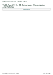 Verfahrenshinweise zum Aufenthalt in Berlin VAB B.AufenthV. 15. - 30. Befreiung vom Erfordernis eines Aufenthaltstitels Inhaltsverzeichnis Dieses PDF wurde erstellt am: 21.04.2021 Seite 621 von 886