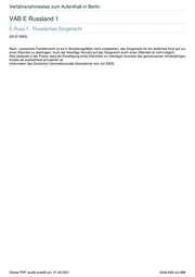 Verfahrenshinweise zum Aufenthalt in Berlin VAB E Russland 1 E.Russ.1. Russisches Sorgerecht (20.07.2005) Nach russischem Familienrecht ist es in Scheidungsfällen nicht vorgesehen, das Sorgerecht für ein eheliches Kind auf nur einen Elternteil zu übertragen. Auch der freiwillige Verzicht auf das Sorgerecht durch einen Elternteil ist nicht möglich. Dies bedeutet in der Praxis, dass die Einwilligung eines Elternteils zur ständigen Ausreise des gemeinsamen minderjährigen Kindes als ausreichend anzusehen ist. (Information des Deutschen Generalkonsulats Nowosibirsk vom Juli 2003). Dieses PDF wurde erstellt am: 21.04.2021 Seite 849 von 886