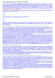 Verfahrenshinweise zum Aufenthalt in Berlin gelten, sondern nur bei Anträgen auf Erteilung einer Blauen Karte. Daraus folgt dann aber im Umkehrschluss, dass etwa eine Aufenthaltserlaubnis für eine akademische Fachkraft sehr wohl gem. § 18b Abs. 1 erteilt werden könnte, wenn der Antragsteller etwa über eine Aufenthaltserlaubnis gem. § 25 Abs. 5 (Ausschlussgrund nach § 19f Abs. 2 Nr. 1) verfügt. In einem solchen Fall bestehen dann auch keine Bedenken nach der Titelerteilung gem. § 18b Abs. 1 in einer logischen Sekunde die Blaue Karte nach § 18b Abs. 2 zu erteilen, ohne dass § 19f Abs. 2 Nr. 1 dem noch entgegenstünde (so wie auch bei § 19f Abs. 1 Nr. 1, vgl. VAB A 19f.1.1). In Absatz 2 Nr. 1 – 4 werden die Personengruppen benannt, die nach Artikel 3 Absatz 2 nicht in den Anwendungsbereich der Hochqualifizierten-Richtlinie fallen. 19f.2.1. frei 19f.2.2. Ein Anwendungsfall in dieser Fallgruppe ist derzeit nicht bekannt. 19f.2.3. frei 19f.2.4. Von dieser Fallgruppe umfasst sind Personen, die von einem Unternehmen mit Sitz in einem andern Mitgliedstaat beschäftigt werden und im Rahmen dieser Beschäftigung ins Bundesgebiet entsandt wurden, vgl. Art. 1 Abs. 1, Abs. 3 der Richtlinie 96/71/EG. 19f.3. Ausschlussgründe bei Besitz einer Blauen Karte EU oder einer Daueraufenthaltserlaubnis EU Abs. 3 S. 1 enthält neben Abs. 1 ebenso wie Abs. 2 zusätzliche Ablehnungsgründe allerdings nur für die Titelgruppen der §§ 16b (Studium, hier allerdings umfänglich und damit anders als bei § 19 f Abs. 1), 16e (studienbezogenes Praktikums EU), 17 Abs. 2 (Studienbewerbung), 18d (Forschung), und 19e (Teilnahme am europäischen Freiwilligendienst). Während § 19f Abs. 2 Ablehnungsgründe für den Erwerb einer Blauen Karte enthält, regelt § 19f Abs. 3 S. 1 umgekehrt die Fälle, in denen gerade der Besitz einer Blauen Karte oder eines vergleichbaren Titels den Titelerwerb sperren. Soweit jedoch eine Blaue Karte EU oder eine Daueraufenthaltserlaubnis EU noch nicht erstmals erteilt wurde, greift der Ausschlussgrund nicht, da er den Besitz dieser Aufenthaltstitel voraussetzt. Abs. 3 S. 2 enthält einen zu Abs. 1 und Abs. 3 S. 1 zusätzlichen Ablehnungsgrund allein für den Titel der Forschung (§ 18d). Promovierende können unter zwei mögliche Aufenthaltstitel fallen: § 16b oder § 18d. Doktoranden, die an einer deutschen Hochschule eingeschrieben sind, um als Haupttätigkeit ein Vollzeitstudienprogramm zu absolvieren, das zu einem Doktorgrad führt, ist vorrangig eine Aufenthaltserlaubnis zum Studium zu erteilen. Umgekehrt kommt § 18d zur Anwendung, wenn keine Einschreibung an einer deutschen Hochschule erfolgt oder die Forschung nicht ausschließlich zum Zweck der Erstellung einer Dissertation durchgeführt wird. Letzteres wäre etwa der Fall, wenn die Dissertation im Rahmen eines Arbeitsvertrags erstellt wird. Soweit für die Durchführung des Promotionsvorhabens ein Arbeitsvertrag zwischen dem Doktoranden und einer deutschen Hochschule oder Forschungseinrichtung abgeschlossen wird, hat § 18d Vorrang gegenüber dem Aufenthalt zu Zwecken des Studiums nach § 16b. In Zweifelsfällen hat der Betroffene ein Wahlrecht. 19f.4. Allgemeine Ausschlussgründe Auch Abs. 4 S. 1 enthält neben Abs. 1 ebenso wie Abs. 2 zusätzliche Ablehnungsgründe allerdings nur für die Titelgruppen der §§ 16b (Studium, hier allerdings umfänglich und damit anders als bei § 19f Abs. 1), 16e (studienbezogenes Praktikums EU), § 16f (anders als bei Abs. 1 bis 3 auch Sprachkurs und Schulbesuch), 17 (anders als bei Abs. 1 und 2 auch Ausbildungsplatzsuche und Studienbewerbung), 18d (Forschung), 18f (Aufenthaltserlaubnis für mobile Forscher) und 19e (Teilnahme am europäischen Freiwilligendienst). In Praxis dürfte die Ausländerbehörde allerdinge keine konkreten Kenntnisse über einen der Ablehnungsgründe haben. In den wenigen Fällen eines konkreten Anhaltspunktes für eine Versagung ist der Vorgang unverzüglich der Referatsleitung vorzulegen und ist das Ermessen grundsätzlich restriktiv auszuüben. 19f.5. Versagungsgründe bei kurzfristiger Mobilität von Studenten und Forschern § 19f Abs. 5 gibt der zuständigen Ausländerbehörde die Möglichkeit, die kurzfristige Mobilität für Studenten nach § 16c sowie für Forscher nach § 18e abzulehnen und kommt in Praxis schon auf Grund der engen Frist nicht zur Anwendung. Zwar lässt die Ablehnung den jeweiligen Aufenthaltstitel des anderen Mitgliedsstaats unberührt, jedoch wird der Ausländer im Hinblick auf seinen Aufenthalt im Bundesgebiet ausreisepflichtig (vgl. A.16c. und A.18e.). Die Möglichkeit der Ablehnung der kurzfristigen Mobilität soll den Ausländerbehörden nach dem Willen des Gesetzgebers Gelegenheit geben, nachträgliche Veränderungen der Sachlage zu berücksichtigen, die bei der Erteilung des Aufenthaltstitels durch den anderen Mitgliedstaat nicht berücksichtigt werden konnten. Die Ablehnung durch die Ausländerbehörde muss innerhalb von 30 Tagen nach Eingang der vollständigen Mitteilung bei der Nationalen Kontaktstelle des BAMF erfolgen. In den wenigen Ausnahmefällen, in denen eine Prüfung der Versagungsgründe nach Absatz 4 Nr. 1 bis 4 erfolgt, ist beim BAMF nachzufragen, wann die Frist begonnen hat, und ist im Zweifel diese Frist zu unterbrechen. Einzig die Ablehnung wegen eines bestehenden Ausweisungsinteresses (Absatz 5 Nummer 4) ist jederzeit während des Aufenthalts im Bundesgebiet möglich. Dieses PDF wurde erstellt am: 21.05.2021 Seite 207 von 899