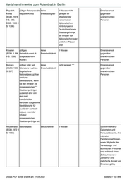 Verfahrenshinweise zum Aufenthalt in Berlin Danach benötigen drittstaatsangehörige Arbeitnehmer, die in einem anderen Mitgliedstaat der EU die Rechtsstellung eines langfristig Aufenthaltsberechtigten besitzen, kein Visum (mehr), wenn sie bis zu 90 Tage innerhalb von zwölf Monaten eine Dienstleistung nach § 21 BeschV in Deutschland erbringen. B.AufenthV.18. Befreiung für Inhaber von Reiseausweisen für Flüchtlinge frei B.AufenthV.19. Befreiung für Inhaber dienstlicher Pässe Mit Inkrafttreten der 8. VO zur Änderung der AufenthV zum 05.03.2013 sind nun auch Inhaber von Diplomatenpässen von Ecuador und Georgien sowie Inhaber von ecuadorianischen Dienstpässen von der Visumpflicht für die Einreise und den Kurzaufenthalt befreit. Die EU hat die bestehenden Visaerleichterungsabkommen mit der Ukraine und der Republik Moldau durch weitere Abkommen, die seit dem 01.07.2013 Anwendung finden, geändert. Gem. Art. 10 Abs. 2 der Abkommen können Inhaber von biometrischen Dienstpässen der Ukraine und der Republik Moldau visumfrei für höchstens 90 Tage pro Zeitraum von 180 Tagen in das Gebiet der Mitgliedstaaten einreisen und sich darin aufhalten. B.AufenthV.20. Befreiung für Inhaber von Ausweisen der Europäischen Union und zwischenstaatlichen Organisationen und der Vatikanstadt frei B.AufenthV.21. Befreiung für Inhaber von Grenzgängerkarten frei B.AufenthV.22. Befreiung für Schüler auf Sammellisten Nach § 22 benötigen Schüler, die nicht Angehörige eines Mitgliedstaates der EU oder des EWR sind, jedoch in einem solchen Staat ihren Wohnsitz haben, bei Schulreisen innerhalb der EU und des EWR keinen Aufenthaltstitel, sofern sie die Berechtigung zur Rückkehr in den Herkunftsstaat durch eine "Liste der Reisenden" nachweisen und der Zielstaat sowie die Transitstaaten die entsprechenden EU- Regelungen in nationales Recht übernommen haben. Die "Liste der Reisenden" gilt für die Reiseteilnehmer, für die darin ein Lichtbild angebracht ist, gleichzeitig als Passersatz für diese Reise.Hierfür ist das Referat A 3 zentral zuständig. Es gilt folgendes Verfahren: Die Schule beantragt formlos unter Angabe von Zweck, Ziel und Dauer der Reise sowie der genauen Personalien der teilnehmenden ausländischen Schüler die Reisendenliste. Dem Antrag ist in jedem Falle ...weggefallen... ein biometrisches Lichtbild beizufügen. Nach Überprüfung des aufenthaltsrechtlichen Status sind die Personalien der teilnehmenden Schüler in die Liste einzutragen und die Berechtigung zur Wiedereinreise in die Bundesrepublik Deutschland zu bestätigen. Auch Minderjährige und Heranwachsende, deren Aufenthalt geduldet wird oder die vom Erfordernis eines Aufenthaltstitels zum Beispiel als Angehörige von Diplomaten oder gem. § 27 befreit sind, können nach dem mit dem 2. ÄndG eingefügten § 22 Abs. 2 in die Reisendenliste eingetragen werden, wenn sie Schüler einer allgemeinbildenden oder berufsbildenden Schule sind und von einer Lehrkraft begleitet werden. Sie sind dann für die Wiedereinreise vom Erfordernis eines Aufenthaltstitels befreit. Bei Geduldeten ist Voraussetzung, dass im Vorgriff auf die erwartete Wiedereinreise entschieden wurde, die Duldung über das Datum der beabsichtigten Wiedereinreise hinaus zu verlängern. Dies kann nur durch das aktenhaltende Referat - im Regelfall A 3 selbst oder A 2 bzw. A 4 erfolgen. Hierauf ist die Schule durch A 3 im Einzelfall hinzuweisen. Spricht der Geduldete dort nicht vor und/oder wird die Duldung nicht über den Tag der Wiedereinreise hinaus verlängert, kann der Betroffene nicht auf die Reisendenliste aufgenommen werden. Ist die Duldung dagegen ausweislich des AusReg über das Datum der beabsichtigten Wiedereinreise hinaus gültig, so kann A 3 den Geduldeten grundsätzlich ohne Abstimmung mit dem jeweils zuständigen Referat und ohne Einsicht in die Ausländerakte zu nehmen in die Liste der Reisenden aufnehmen. Sind andere Referate - insbesondere R 1 - 3 oder P 1 - aktenführend, erfolgt die Aufnahme in die Reisendenliste nur im Einvernehmen mit dem zuständigen Referat. Merke: Bei Geduldeten ist auf der Liste gem. § 22 Absatz 2 anzuordnen, dass die Abschiebung nach der Wiedereinreise ausgesetzt wird. Diese Anordnung der aufschiebend bedingten Duldung ist erforderlich, weil mit einer Ausreise eine Duldung erlischt (vgl. Nr. 3.3.6 AufenthG VwV). Die Duldung, deren Wirkung aufschiebend bedingt mit der Wiedereinreise eintritt, ist auf der Schülersammelliste zu vermerken. Der Vermerk hat den Wortlaut: „Die Abschiebung des Schülers/der Schülerin/der Schüler ist nach der Wiedereinreise und bis zum … ausgesetzt (§ 22 Absatz 2 AufenthV).“ Für Schüler, die im Besitz einer Aufenthaltsgestattung sind, findet § 22 Abs. 2 entsprechend Anwendung. In jedem Fall wird bei Geduldeten und Gestatteten je eine Kopie der Reisendenliste zur Ausländerakte gegeben. Nach Abstimmung auf europäischer Ebene bestehen seitens des BMI keine Bedenken, auch Berufsschüler in die begünstigenden Regelungen mit einzubeziehen, so dass auch diese in die Liste der Reisenden aufgenommen werden können. Die Betreffenden sollten allerdings vorsorglich darauf hingewiesen werden, dass die Ausstellung einer Reisendenliste in diesen Fällen immer mit dem Risiko verbunden ist, dass die zuständigen Behörden in den Mitgliedstaaten - aus welchen Gründen auch immer - diese Liste nicht akzeptieren und deshalb Schwierigkeiten bei Einreise und Aufenthalt entstehen können. Nach dem Ausfüllen der Liste ist diese einem Beauftragten der Schule mit dem Hinweis auszuhändigen, dass die von der Schulleitung geforderten Angaben (Zeilen 1 - 4 sowie linkes Kästchen darunter) unbedingt einzutragen und vom Schulleiter - persönlich oder durch den allgemein bestellten Vertreter - gegenzuzeichnen sind. Merke: Die Eintragung und Gegenzeichnung hat gem. Nr. 3.3.6 AufenthG- VwV grundsätzlich vor der Bestätigung der Liste Dieses PDF wurde erstellt am: 21.05.2021 Seite 629 von 899