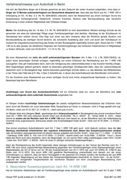 Verfahrenshinweise zum Aufenthalt in Berlin Wiederkehroption nach § 37 AufenthG bzw. § 16 AuslG ist nicht ausreichend (OVG Berlin-Brandenburg, Urteil vom 04.05.2006 - OVG 7 B 10.05 ). „ Dort“ seit mindestens drei Jahren seinen ordnungsgemäßen Wohnsitz hat, wer sich drei Jahre rechtmäßig im Bundesgebiet aufhält und währenddessen eine familiäre Lebensgemeinschaft mit dem den Nachzug vermittelnden türkischen Arbeitnehmer führt, der während dieser drei Jahre (!)dem regulären Arbeitsmarkt angehört (OVG Berlin-Brandenburg Beschluss vom 09.10.2008 - OVG 11 N. 52.08 - sowie VG Berlin, Urteil vom 17.07.2008 - VG 29 A 247.07 - m.w.N.). Da der zuziehende Familienangehörige des türkischen Arbeitnehmers in den ersten drei Jahren grundsätzlich und vorbehaltlich einer günstigeren Regelung nicht berechtigt ist, durch die Aufnahme einer Beschäftigung ein selbständiges Leben zu führen, ist sein Aufenthalt im Aufnahmemitgliedstaat während dieser Zeit allein durch die Familienzusammenführung gerechtfertigt. die Familienzusammenführung als Zweck des Art. 7 S. 1 ARB 1/80 muss daher im Regelfall dadurch zum Ausdruck kommen, dass der Familienangehörige in den ersten drei Jahren mit dem den Nachzug vermittelnden Arbeitnehmer tatsächlich zusammenwohnt (vgl. EuGH, Urt. v. 16.06.2011 -C-484/07- Pehlivan, InfAuslR 2011, S. 272 ff.). Eine familiäre Lebensgemeinschaft setzt daher nicht zwingend aber grundsätzlich eine gemeinsame Wohnung voraus. Hier gelten die allgemeinen aufenthaltsrechtlichen Maßstäbe. Der Erwerb des Rechts aus Art. 7 S. 1 ARB 1/80 darf insoweit jedoch nur von solchen Bedingungen abhängig gemacht werden, die die Einhaltung des Zwecks des Art. 7 S. 1 ARB 1/80 gewährleisten sollen. So wird der Erwerb des Rechts aus Art. 7 S. 1 ARB 1/80 nicht dadurch beeinträchtigt, dass der Familienangehörige innerhalb der dreijährigen Frist heiratet, sofern zwischen dem Familienangehörigen und dem türkischen Arbeitnehmer, durch den der Familienangehörige im Rahmen der Familienzusammenführung in das Bundesgebiet einreisen durfte, innerhalb der dreijährigen Frist tatsächlich eine familiäre Lebensgemeinschaft im o.g. Sinn besteht (vgl. EuGH, Urteil v. 16.06.2011 –C-484/07- Pehlivan, InfAuslR 2011, S. 272 ff.). Aus der Übergangsvorschrift des Art. 16 Abs.1 ARB 1/80, wonach die Regelung erst ab dem 01.12.1980 Anwendung findet, sowie aus dem Begriff "seit", der eine zeitliche Kontinuität des gemeinsamen Wohnsitzes jedenfalls bis zum Inkrafttreten der Regelung voraussetzt, folgt, dass Rechte aus Art. 7 Satz 1 ARB 1/80 dann nicht erworben werden können, wenn die erforderliche dreijährige familiäre Lebensgemeinschaft mit einem türkischen Arbeitnehmer bereits vor dem 01.12.1980 nicht mehr bestanden hat. Die Zugehörigkeit des den Nachzug vermittelnden Familienangehörigen zum regulären Arbeitsmarkt richtet sich nach den oben zu Art. 6 Abs. 1, 1. Spiegelstrich ARB 1/80 dargestellten Kriterien, so dass angemessene Zeiträume zur Arbeitsplatzsuche - in der Regel bis zu sechs Monaten, vgl. oben Ziffer 2.1.2. - auch hier noch nicht zum Ausscheiden aus dem regulären Arbeitsmarkt führen (EuGH, Urteil vom 18.12.2008 - C-337/07 - Altun). Es kommt nicht darauf an, dass der den Nachzug vermittelnde Familienangehörige vor oder während dieser drei Jahre selbst Rechte aus Art. 6 ARB 1/80 erworben hat. Voraussetzung ist aber eine dreijährige Zugehörigkeit des den Nachzug vermittelnden Familienangehörigen zum regulären Arbeitsmarkt. Unterbrechungen der Erwerbstätigkeit im Sinne von Art. 6 Abs. 2 Satz 1 ARB 1/80 sind insoweit ebenso unschädlich wie vorübergehende Unterbrechungen etwa im Zuge eines Arbeitsplatzwechsels. Scheidet der den Nachzug vermittelnde Arbeitnehmer während der drei Jahre aus dem regulären Arbeitsmarkt generell aus (vgl. dazu unter Ziffer 2.1.2), entstehen Rechte aus Art. 7 Satz 1 ARB 1/80 nicht (so auch OVG Berlin-Brandenburg, Beschluss vom 20.03.2008 - OVG 11 S 81.07- m.w.N.) . Kurze Zeiträume, in denen der Familienangehörige keine Aufenthaltserlaubnis und/oder keine Erlaubnis der Beschäftigung hatte, sind für den Erwerb von Rechten aus Art. 7 ARB 1/80 unschädlich, wenn die Ausländerbehörde die Unterbrechung bei der Verlängerung unberücksichtigt gelassen hat. Das Aufenthaltsrecht wird zu dem Zweck gewährt, sich im Bundesgebiet auf ein Stellenangebot zu bewerben bzw. als Arbeitnehmer beschäftigt zu sein. Während Art. 7 Satz 1, 1. Spiegelstrich ARB 1/80 dieses Recht unter den Vorbehalt der Vorrangprüfung für Unionsbürger stellt, entfällt dieser Vorbehalt gemäß Art. 7 Satz 1, 2. Spiegelstrich ARB 1/80, wenn dieselben Voraussetzungen für einen Zeitraum von fünf Jahren erfüllt werden. Dieser Differenzierung kommt für das Aufenthaltsrecht regelmäßig keine Bedeutung zu. 2.2.1.2. Verlust des Aufenthaltsrechts vgl. unter 2.2.2.2. 2.2.2. Art. 7 Satz 2 ARB 1/80 2.2.2.1. Erwerb des Aufenthaltsrechts Nur das Kind türkischer Arbeitnehmer, von denen ein Elternteil mindestens drei Jahre ordnungsgemäß im Bundesgebiet beschäftigt war, hat unabhängig von der Dauer und dem Zweck seines Aufenthalts das Recht, sich im Bundesgebiet zum Zwecke der Bewerbung auf jedes Stellenangebot aufzuhalten, wenn es im Bundesgebiet eine Berufsausbildung abgeschlossen hat. Für die drei Jahre ordnungsgemäßer Beschäftigung des Elternteils kommt es nicht darauf an, dass diese bei dem selben Arbeitgeber oder in Folge geleistet wurde. Ebensowenig muss der Elternteil zum Zeitpunkt, zu dem das Kind seine Berufsausbildung abgeschlossen hat, beschäftigt oder auch nur im Bundesgebiet wohnhaft gewesen sein, wenn nur zu Dieses PDF wurde erstellt am: 21.05.2021 Seite 885 von 899