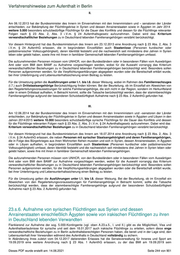 Verfahrenshinweise zum Aufenthalt in Berlin bzw. eines unbegleiteten Minderjährigen in der Lage ist. Die Personen werden von einem Vertreter des aufnehmenden Landes unmittelbar nach Ankunft vom Zielflughafen zum Zielort begleitet. Unbegleitete Minderjährige werden anschließend durch das zuständige Jugendamt am Zielort in Obhut genommen. 1.8. Die Verteilung der ausgewählten Personen erfolgt nach Maßgabe des Königsteiner Schlüssels (Berlin 5,07 % für 2013) und unter Berücksichtigung familiärer und sonstiger Bindungen nach Deutschland (s. dazu auch nachfolgend 2.). § 24 Abs. 3 bis 5 AufenthG findet Anwendung, d.h. u.a., dass aufgenommene Flüchtlinge keinen Anspruch darauf haben, sich an einem bestimmten Ort aufzuhalten, ein Widerspruch gegen die Zuweisungsentscheidung nicht stattfindet und eine Klage keine aufschiebende Wirkung hat. 2. Begünstigter Personenkreis Die Auswahl der Flüchtlinge durch das BAMF orientiert sich an: a) Humanitären Kriterien Besonders schutzbedürftige Kinder mit ihren Eltern bzw. Personensorgeberechtigten unter Wahrung der Familieneinheit, medizinischer Bedarf; hier liegt die Obergrenze bei 3 %, Frauen in prekären Lebenssituationen, Angehörige religiöser Minderheiten, sofern eine spezifische religionsbezogene Verfolgungssituation vorliegt. Voraussetzung für eine Aufnahme nach humanitären Kriterien ist eine bis zum 31.03.2013 erfolgte Registrierung beim UNHCR oder Caritas im Libanon. b ) Bezügen zu Deutschland wie Familiäre Bindungen, Voraufenthalte, Sprachkenntnisse, sonstige Bindungen nach Deutschland, insbesondere aufnahmebereite Institutionen syrischer religiöser Minderheiten. Dabei sollen vorrangig Personen berücksichtigt werden, für die Verpflichtungserklärungen abgegeben wurden oder die Bereitschaft erklärt wurde, bei ihrer Unterbringung und Lebensunterhaltssicherung einen Beitrag zu leisten. c) Fähigkeit, nach Konfliktende einen besonderen Beitrag zum Wiederaufbau des Landes zu leisten, etwa durch die Möglichkeit, vorhandene Qualifikationen während des Aufenthalts in Deutschland zu erhalten und auszubauen, wenn diese Mglichkeit am Fluchtort nicht besteht. Die Aufnahme setzt nicht die Erfüllung mehrerer Kriterien voraus. 3. Ausschlussgründe Ausgeschlossen sind grundsätzlich Personen, die wegen Delikten, die in Deutschland als vorsätzliche Straftat anzusehen sind, verurteilt worden sind oder bei denen tatsächliche Anhaltspunkte die Schlussfolgerung rechtfertigen, dass Verbindungen zu kriminellen Organisationen oder terroristischen Vereinigungen bestehen oder bestanden haben oder dass sie in sonstiger Weise Bestrebungen verfolgen oder unterstützen oder unterstützt haben, die gegen den Gedanken der Völkerverständigung verstoßen oder gegen das friedliche Zusammenleben der Völker gerichtet sind. 4. Erteilung und Verlängerung des Aufenthaltstitels im Inland 4.1. Im Rahmen des Aufnahmeverfahrens findet eine Überprüfung der Personen im Visumverfahren durch die Sicherheitsbehörden statt. Eine Beteiligung der Sicherheitsbehörden im Inland ist damit erst vor der Verlängerung der Aufenthaltserlaubnis erforderlich. 4.2. Die aufgenommenen Flüchtlinge erhalten eine AE nach § 23 Abs. 2 AufenthG für zwei Jahre; von der Anwendung der allgemeinen Erteilungsvoraussetzungen des § 5 Abs. 1 AufenthG ist dabei abzusehen. Der Aufenthaltstitel berechtigt zur Ausübung einer Erwerbstätigkeit ( vgl. § 4a Abs. 1 S. 1 ). Die Aufenthaltserlaubnis wird bei Bezug von Leistungen nach dem Zweiten oder dem Zwölften Buch Sozialgesetzbuch mit der Auflage „Wohnsitznahme im Land Berlin erforderlich" versehen (bzgl. der Einzelheiten vgl. die Ausführungen unter A.12.2.). Besteht ein Anspruch auf einen Integrationskurs (§ 44 Abs. 1 S. 1 Nr. 2 i.V.m. Abs. 3) und verfügt die Person nicht über ausreichende Kenntnisse der deutschen Sprache, ist eine Verpflichtung zur Teilnahme an einem Integrationskurs zu verfügen (§ 44 Abs. 1 S. 1 Nr. 1 b). Dieses PDF wurde erstellt am: 14.06.2021 Seite 242 von 901