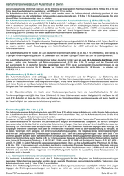 Verfahrenshinweise zum Aufenthalt in Berlin betroffene Person sich wg. unrichtigen Angaben gem. § 95 Abs. 2 Nr. 2 AufenthG strafbar gemacht hat, besondere Anforderungen an die Leistungsfähigkeit zu stellen sind, d.h. Einkommens- und Vermögensverhältnisse sind umfänglich zu prüfen. Kann danach eine Bonität (vgl. A.2.3.1.14) nicht ausreichend glaubhaft gemacht werden, kann sie auf der VE auch nicht bestätigt werden und die VE ist damit unbeachtlich (vgl. 68.1.2.2. der AufenthG-VwV). Wird im Zusammenhang mit einer beantragten Visumverlängerung eine Notierung aus einem Anlass nach § 2 Abs. 1 Nr. 2 VWDG festgestellt, so ist diese Notierung in die Entscheidung über den nun vorliegenden Verlängerungsantrag mit einzubeziehen. Die Notierung allein trägt eine Versagung der Visumverlängerung jedoch nicht. Wird im Zusammenhang mit einer VE oder bei beantragter Visumverlängerung eine Notierung im Sinne von § 2 Abs. 1 Nr. 1 a) – d) VWDG festgestellt, so gilt Vorstehendes entsprechend. </div> 4. Auskunftsrecht Betroffener Nach § 12 VWDG können Betroffene jederzeit einen Antrag auf Auskunft über die über sie gespeicherten Daten stellen. Der Antrag kann auch von einem gesetzlichen oder bevollmächtigten Vertreter gestellt werden. Ein solcher Antrag ist schriftlich beim Bundesverwaltungsamt zu stellen und bedarf keiner ausdrücklichen Begründung. Für die Prüfung, ob eine Auskunftserteilung nach § 12 Abs. 2 VWDG unterbleiben muss, holt das BVA die Stellungnahme der zuständigen Stelle – also der Behörde, die die Notierung veranlasst hat – ein. Eine Auskunftserteilung unterbleibt, wenn die Auskunft die ordnungsgemäße Erfüllung der Aufgaben der Behörde gefährden würde, die die Notierung veranlasst hat, die Auskunft die öffentliche Sicherheit gefährden oder sonst dem Wohl des Bundes oder eines Landes Nachteile bereiten würde oder die Daten oder die Tatsache ihrer Speicherung geheim gehalten werden müssen. Dieses PDF wurde erstellt am: 14.06.2021 Seite 63 von 901