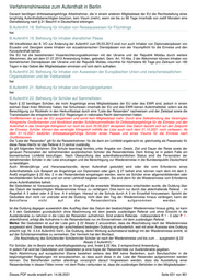 Verfahrenshinweise zum Aufenthalt in Berlin Danach benötigen drittstaatsangehörige Arbeitnehmer, die in einem anderen Mitgliedstaat der EU die Rechtsstellung eines langfristig Aufenthaltsberechtigten besitzen, kein Visum (mehr), wenn sie bis zu 90 Tage innerhalb von zwölf Monaten eine Dienstleistung nach § 21 BeschV in Deutschland erbringen. B.AufenthV.18. Befreiung für Inhaber von Reiseausweisen für Flüchtlinge frei B.AufenthV.19. Befreiung für Inhaber dienstlicher Pässe Mit Inkrafttreten der 8. VO zur Änderung der AufenthV zum 05.03.2013 sind nun auch Inhaber von Diplomatenpässen von Ecuador und Georgien sowie Inhaber von ecuadorianischen Dienstpässen von der Visumpflicht für die Einreise und den Kurzaufenthalt befreit. Die EU hat die bestehenden Visaerleichterungsabkommen mit der Ukraine und der Republik Moldau durch weitere Abkommen, die seit dem 01.07.2013 Anwendung finden, geändert. Gem. Art. 10 Abs. 2 der Abkommen können Inhaber von biometrischen Dienstpässen der Ukraine und der Republik Moldau visumfrei für höchstens 90 Tage pro Zeitraum von 180 Tagen in das Gebiet der Mitgliedstaaten einreisen und sich darin aufhalten. B.AufenthV.20. Befreiung für Inhaber von Ausweisen der Europäischen Union und zwischenstaatlichen Organisationen und der Vatikanstadt frei B.AufenthV.21. Befreiung für Inhaber von Grenzgängerkarten frei B.AufenthV.22. Befreiung für Schüler auf Sammellisten Nach § 22 benötigen Schüler, die nicht Angehörige eines Mitgliedstaates der EU oder des EWR sind, jedoch in einem solchen Staat ihren Wohnsitz haben, bei Schulreisen innerhalb der EU und des EWR keinen Aufenthaltstitel, sofern sie die Berechtigung zur Rückkehr in den Herkunftsstaat durch eine "Liste der Reisenden" nachweisen und der Zielstaat sowie die Transitstaaten die entsprechenden EU- Regelungen in nationales Recht übernommen haben. Großbritannien ist aus der EU ausgetreten und somit kein Mitgliedstaat mehr. Durch eine Selbstbindung des Vereinigten Königreichs Großbritannien und Nordirland werden Schülersammellisten für Drittstaatsangehörige für die Einreise und den Aufenthalt in das Vereinigte Königreich nur noch bis zum 30.09.2021 akzeptiert. Das Datum bezieht sich auf den Zeitpunkt der Einreise. Schüler können das vereinigte Königreich mithilfe der Liste auch nach dem 01.10.2021 noch verlassen. Ab dem 01.10.2021 bedürfen drittstaatsangehörige Schüler eines Passes und eines Visums für die Einreise nach Großbritannien. Die "Liste der Reisenden" gilt für die Reiseteilnehmer, für die darin ein Lichtbild angebracht ist, gleichzeitig als Passersatz für diese Reise.Hierfür ist das Referat A 3 zentral zuständig. Es gilt folgendes Verfahren: Die Schule beantragt formlos unter Angabe von Zweck, Ziel und Dauer der Reise sowie der genauen Personalien der teilnehmenden ausländischen Schüler die Reisendenliste. Dem Antrag ist in jedem Falle ein biometrisches Lichtbild beizufügen. Nach Überprüfung des aufenthaltsrechtlichen Status sind die Personalien der teilnehmenden Schüler in die Liste einzutragen und die Berechtigung zur Wiedereinreise in die Bundesrepublik Deutschland zu bestätigen. Auch Minderjährige und Heranwachsende, deren Aufenthalt geduldet wird oder die vom Erfordernis eines Aufenthaltstitels zum Beispiel als Angehörige von Diplomaten oder gem. § 27 befreit sind, können nach dem mit dem 2. ÄndG eingefügten § 22 Abs. 2 in die Reisendenliste eingetragen werden, wenn sie Schüler einer allgemeinbildenden oder berufsbildenden Schule sind und von einer Lehrkraft begleitet werden. Sie sind dann für die Wiedereinreise vom Erfordernis eines Aufenthaltstitels befreit. Bei Geduldeten ist Voraussetzung, dass im Vorgriff auf die erwartete Wiedereinreise entschieden wurde, die Duldung über das Datum der beabsichtigten Wiedereinreise hinaus zu verlängern. Dies kann nur durch das aktenhaltende Referat - im Regelfall A 3 selbst oder A 2 bzw. A 4 erfolgen. Hierauf ist die Schule durch A 3 im Einzelfall hinzuweisen. Spricht der Geduldete dort nicht vor und/oder wird die Duldung nicht über den Tag der Wiedereinreise hinaus verlängert, kann der Betroffene nicht auf die Reisendenliste aufgenommen werden. Ist die Duldung dagegen ausweislich des AusReg über das Datum der beabsichtigten Wiedereinreise hinaus gültig, so kann A 3 den Geduldeten grundsätzlich ohne Abstimmung mit dem jeweils zuständigen Referat und ohne Einsicht in die Ausländerakte zu nehmen in die Liste der Reisenden aufnehmen. Sind andere Referate - insbesondere R 1 - 3 oder P 1 - aktenführend, erfolgt die Aufnahme in die Reisendenliste nur im Einvernehmen mit dem zuständigen Referat. Merke: Bei Geduldeten ist auf der Liste gem. § 22 Absatz 2 anzuordnen, dass die Abschiebung nach der Wiedereinreise ausgesetzt wird. Diese Anordnung der aufschiebend bedingten Duldung ist erforderlich, weil mit einer Ausreise eine Duldung erlischt (vgl. Nr. 3.3.6 AufenthG VwV). Die Duldung, deren Wirkung aufschiebend bedingt mit der Wiedereinreise eintritt, ist auf der Schülersammelliste zu vermerken. Der Vermerk hat den Wortlaut: „Die Abschiebung des Schülers/der Schülerin/der Schüler ist nach der Wiedereinreise und bis zum … ausgesetzt (§ 22 Absatz 2 AufenthV).“ Für Schüler, die im Besitz einer Aufenthaltsgestattung sind, findet § 22 Abs. 2 entsprechend Anwendung. In jedem Fall wird bei Geduldeten und Gestatteten je eine Kopie der Reisendenliste zur Ausländerakte gegeben. Nach Abstimmung auf europäischer Ebene bestehen seitens des BMI keine Bedenken, auch Berufsschüler in die begünstigenden Regelungen mit einzubeziehen, so dass auch diese in die Liste der Reisenden aufgenommen werden können. Die Betreffenden sollten allerdings vorsorglich darauf hingewiesen werden, dass die Ausstellung einer Reisendenliste in diesen Fällen immer mit dem Risiko verbunden ist, dass die zuständigen Behörden in den Mitgliedstaaten - Dieses PDF wurde erstellt am: 14.06.2021 Seite 631 von 901