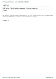 Verfahrenshinweise zum Aufenthalt in Berlin VAB D 9 D.9. Hoher Flüchtlingskommissar der Vereinten Nationen (2. ÄndG) 9.0. § 9 regelt die Zusammenarbeit der Asylbehörden mit dem Hohen Flüchtlingskommissar, der in Einzelfällen Stellung nehmen und auch Ausländer aufsuchen kann, wenn sie sich in Gewahrsam befinden. 9.1. bis 9.5. frei Dieses PDF wurde erstellt am: 14.06.2021 Seite 763 von 901