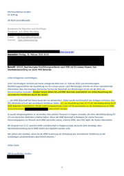 I Von: Gesendet: Donnerstag, 11. Februar 2016 12:41 An: AG-Rück@bamf.bund.de Cc: agrueckhessen@hmdis.hessen.de;, M2@bmi.bund.de; 508-9-1 @ auswaertiges-amt.de;, M3@bmi.bund.de; B2@bmi.bund.de; PPostRef25WBS@polizei.bund.de Betreff: 160211_Beschleunigtes Rückführungsverfahren nach MNE mit EU-Laissez- Passers; hier: Identitätsüberprüfung nur durch MNE Behörden Liebe Kolleginnen und Kollegen, bitte senden Sie umgehend die beiden nachfolgenden Informationen zur (beschleunigten) Rückführung nach Montenegro an die Länder mit der Bitte um exakte Einhaltung des bestehenden Verfahrens. Die montenegrinische Seite hat bereits beim AA um einen Gesprächstermin nachgesucht in dieser Angelegenheit. Die Länder sind angehalten, die beschriebenen Verfahren genau zu beachten. Andernfalls besteht die reale Gefahr, dass Rückführungen nach Montenegro mit EU-Laissez passer schon bald nicht mehr möglich sein könnten. Vielen Dank. 1) EEE Außenministerium MNE, d.Verf.] hat mit Hinweis auf den aktuellen Vorfall an er ungarisch-serbischen Grenze nochmal nachdrücklich darauf hingewiesen, dass MNE allergrößten Wert darauf legt, dass die bilateralen Vereinbarungen zum beschleunigten Rückführungsverfahren auch von deutscher Seite exakt eingehalten werden. MNE hat offensichtlich Sorgen, dass nicht-MNE mit EU-Laissez-Passer-Dokumenten nach MNE einreisen könnten. Nach Auskunft von :: MNE nach erfolgter Identitätsüberprüfung von EU-Laissez-Passer- Rückkehrern die Namen der Personen, die einreisen dürfen u.a. den zuständigen serbischen Behörden mit. Es muss daher davon ausgegangen werden, dass SRB Grenzbeamten in Zukunft bei Buskontrollen — wie jetzt geschehen - mit EU-Laissez-Passers Reisende, deren Namen nicht von MNE mitgeteilt wurden, zurückweisen werden!“ 2) „...Verbalnote Nr. 09/14-56/6-3 des MNE MFA vom 09. Februar 2016 mit einer deutschen Arbeitsübersetzung zur Kenntnis. Darin moniert das MFA, dass von deutscher Seite die durch Verbalnotenaustausch getroffenen Vereinbarungen, die die beschleunigte Rückführung von Personen ohne Ausweis mit von deutschen Behörden ausgestellten EU-Laissez-Passer- Dokumenten nach MNE nicht eingehalten werden. Wie schon berichtet legt MNE größten Wert darauf, das vor der Ausstellung von EU-Laissez-Passers auf jeden Fall eine Identitätsüberprüfung durch die zuständigen MNE Behörden stattfindet. Zur Erinnerung. Es gelten folgende Regelungen für die Zeitspanne des beschleunigten Rückführungsverfahrens: 1. Das beschleunigte RFV zwischen D und MNE gilt für 6 Monate, vom 30.12.2015 bis einschl. 29.06.2016 2. Personenkreis: MNE Staatsangehörige ohne Ausweise ( + evtl. berechtigte nicht-MNE Familienangehörige) 3. Rückreisedokument: EU-Laissez-Passers mit Passbild, ausgestellt von D Behörden
