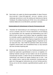 3.2. Damit ändern sich zugleich die Abrechnungsmodalitäten für diesen Personen- kreis, da ab dem 1. Januar 2016 nicht mehr – wie zuvor – personen- und mo- natsbezogen abzurechnen ist, denn die Aufteilung der Gesamtsumme folgt der Verteilquote. Die anteilige Auszahlung der 35 Mio. Euro an die Landkreise und kreisfreien Städte wird von der ADD jährlich „automatisch“ veranlasst. Kostenerstattung für Aufwendungen im Zuge der Versorgung der umA 4.1. Hinsichtlich der Kostenerstattung für die Unterbringung und Versorgung der umA ist zu beachten, dass sich im Fall der Inobhutnahme und der Einleitung von Anschlusshilfen durch das Jugendamt die Kostenerstattung nach § 89 d SGB VIII richtet. Die Kosten, die ein örtlicher Träger der Jugendhilfe für jedwe- de rechtmäßig gewährte Jugendhilfemaßnahme für umA aufwendet, werden demnach vom Land voll erstattet. Diese Regelung ist gegenüber der Erstattung nach § 3 die speziellere und somit vorrangige Regelung. Hingewiesen sei da- rauf, dass § 89 d Abs. 1 Satz 3 SGB VIII ausdrücklich erklärt, dass die Erstat- tungspflicht unberührt bleibt, wenn die betreffende Person um Asyl nachsucht oder einen (formellen) Asylantrag stellt. 4.2. Erfolgt nach der Inobhutnahme des umA eine Familienzusammenführung und besteht kein ergänzender Jugendhilfebedarf, so kann der, nun begleitete, min- derjährige Ausländer Leistungen nach dem AsylbLG unter den dort genannten Voraussetzungen beziehen. In diesem Fall kann die betreffende Kommune für Aufwendungen nach AsylbLG die reguläre Erstattung nach § 3 Abs. 1 oder Abs. 2 geltend machen, soweit die dafür erforderlichen Voraussetzungen ge- geben sind. Erfolgt nach der Inobhutnahme des umA eine Familienzusammen- führung und es wird eine ambulante Jugendhilfemaßnahme gewährt, gilt 4.4 analog. -6-