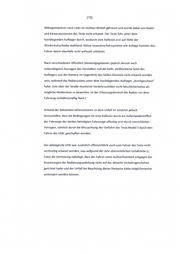 [21] Start der Fahrerassistenzsysteme deutlich dargestellt. Die Voraussetzung, dass der Fahrer jederzeit die Kontrolle über das Fahrzeug behalten muss, entspricht dem derzeitigen Stand der Technik für das „Teilautomatisierte Fahren" [siehe BMVI Website, Automatisiertes Fahren) . Unter diesen Voraussetzungen und innerhalb der Systemgrenzen erfüllt das System die vom Hersteller beschriebenen Leistungen . Das Fahrzeug lässt dann bis zu 6 Minuten Fahrzeit zu, bis eine „hands-on " Detektion durchgeführt wird . Dafür reicht das kurze Aufbringen eines geringen Drehmomentes auf das Lenkrad. Sofern kein „hands-on" vom Fahrzeug festgestellt wird, erfolgen mehrere optische und akustische Warnungen; wird auf diese nicht reagiert, verringert das Fahrzeug selbständig die Geschwindigkeit und bleibt schließlich mit eingeschalteter Warnblinkanlage stehen. Festgestellte Grenzen des Systems (z.B. sehr schlechte Sichtbedingungen durch Regen/Gischt, schlechte Fahrbahnmarkierungen, etc.) sind in der Bedienungsanleitung aufgeführt. Sofern die Fahrerassistenzsysteme durch den Fahrzeugführer überwacht werden, kann auf eine ggf. im Betrieb auftretende Überschreitung der Systemgrenze korrekt und angemesse n reagiert werden . Sämtliche Fahrerassistenzsysteme lassen sich dann augenblicklich durch den Fahrzeugführer übersteuern . Bei der Überschreitung von Systemgrenzen sind generell zwei Fälle zu unterscheiden: a) Das System überschreitet eine Systemgrenze und erkennt dieses Sofern eine Systemgrenze während des Betriebes überschritten wird (z.B. nicht-mehr Erkennung der Fahrspur) schaltet sich das System mit dem entsprechenden optischen und akustischen Hinweis ab. Der Fahrer muss unmittelbar die Fahraufgabe übernehmen . b) Das System überschreitet eine Systemgrenze und erkennt dieses nicht Sofern eine Systemgrenze während des Betriebes überschritten wird (z.B. falsche Erkennung der Fahrspur, Erkennung der falschen Fahrspur) schaltet sich das System nicht ab. Der Fahrzeugführer erhält folglich auch keinen Hinweis und muss die Steuerung manuell übernehmen. Sobald ein solcher Eingriff des Fahrers erfolgt deaktivieren sich die entsprechenden Fahrerassistenzsysteme. Dies entspricht dem derzeitigen Stand der Technik.