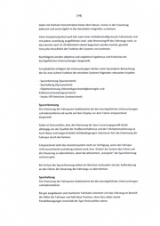 [14] dabei mit höchster Konzentration hinter dem Steuer, immer in der Erwartung jederzeit und unverzüglich in das Geschehen eingreifen zu können. Diese Anspannung lässt auch hier nach einer verhältnismäßig kurzen Fahrstrecke und mit jedem zuverlässig ausgeführten Lenk- oder Bremseingriff des Fahrzeugs nach, so dass bereits nach 15-20 Kilometern damit begonnen werden konnte, gezielte Versuche hinsichtlich der Funktion des Systems vorzunehmen . Nachfolgend werden objektive und subjektive Ergebnisse und Eindrücke der durchgeführte n Untersuchungen dargestellt. Grundsätzlich erfolgten die Untersuchungen hierbei unter besonderer Betrachtung der für eine sichere Funktion der einzelnen Systeme folgenden relevanten Aspekte : - Spurerkennung (Spurassistent) - Spurhaltung (Spurassistent) - Objekterkennu ng (Abstandsgeschwindigkeitsregler und Kollisionsvermeidungsassistent) - Hands-Off-Detection (Lenkassistent) Spurerkennung Die Erkennung der Fahrspuren funktionierte bei den durchgeführte n Untersuchungen zufriedenstellend und wurde auf dem Display vor dem Fahrer entsprechend dargestellt. Dabei ist festzustellen, dass die Erkennung der Spur erwartungsgem äß direkt abhängig von der Qualität der Straßenverhältnisse und der Fahrbahnmarkierung ist. Auch Nässe und eingeschränkte Sichtbedingungen reduzieren hier die Erkennung der Fahrspur durch die Kamera . Entsprechend steht das Assistenzsystem nicht zur Verfügung, wenn die Fahrspur nicht ausreichend zuverlässig erkannt wird, bzw. fordert das System den Fahrer auf die Steuerung zu übernehmen, wenn bei aktiviertem „Autopilot" die Spurerkennung verloren geht. Bei Verlust der Spurerkennung ertönt ein Warnton verbunden mit der Aufforderung an den Fahrer die Steuerung des Fahrzeugs zu übernehmen. Spurhaltung Die Erkennung der Fahrspuren funktionierte bei den durchgeführte n Untersuchungen zufriedenstelle nd . Bei gut ausgebauter und markierter Fahrbahn orientiert sich das Fahrzeug im Bereich der Mitte der Fahrspur und hält diese Position, ohne dass dabei starke Pendelbewegungen innerhalb der Spur festzustellen wären.