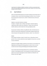 [18] requirements; the software enrolled to customers in vehicles, new and on the road, meets all the Type Approval requirements and has been verified to ECE R79.01 Annex 6 and/or ECE R13-H Annex 8." 1.6. App-Funktionen Über eine entsprechende App lassen sich einzelne Funktionen des Fahrzeugs über ein Smartphone steuern, sowie einzelne Statusabfragen durchführen . Dazu ist zunächst die Einrichtung eines Accounts unter „ myTesla " mit Benutzername und Passwort erforderlich . Mögliche zu steuernde Funktionen sind dabei : Entriegeln, Verriegeln, Hupen, Lichthupe, Dach kippen, Temperaturregelung, Ladeanschlus~ öffnen, Starten und „ Herbeirufen ". Darüber hinaus können der aktuelle Ladestatus und der Standort des Fahrzeugs abgefragt werden . Die genannten Funktionen erklären sich größtenteils selbst und funktionierten im Rahmen der Fahrversuche entsprechend . Ein besonderes Augenmerk galt bei der Untersuchung des Fahrzeugs jedoch den Funktionen „ Starten " und „ Herbeirufen ". Starten Nach Antippen des Buttons „Starten" wird der Prozess „Schlüsselloses Starten " gestartet. Hierzu ist dann zunächst die erneute Eingabe des Passworts des „ myTesla "- Accounts erforderlich . Sobald hier die Eingabe erfolgt ist, besteht für einen Zeitraum von zwei Minuten die Möglichkeit das Fahrzeug ohne Fahrzeugschlüssel zu starten . Hierzu ist wie bei normalem Start des Fahrzeugs die Betätigung des Bremspedals erforderlich . Auch nach dem Start des Fahrzeugs läuft die Zeit von zwei Minuten weiterhin sichtbar im Fahrerdisplay herunter. Das Fahrzeug lässt sich danach weiterhin fahren , jedoch ist ein erneuter Fahrzeugstart nach dem Abstellen nach Ablauf der zwei Minuten nicht mehr möglich .