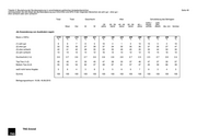 Tabelle 2: Beurteilung der Bundesregierung in verschiedenen politischen Aufgabenbereichen Seite 50 Und beurteilen Sie die Arbeit der Bundesregierung aus CDU/CSU und SPD in den folgenden Bereichen als sehr gut - eher gut - eher schlecht oder sehr schlecht? Total Sonntagsfrage Bündnis ’90, Reps/ DVU/ Piraten- SPD CDU, CSU Die Grünen FDP Die Linke NPD Partei AfD die Zuwanderung von Ausländern regeln Basis (=100%) 1219 178 256 77 17 65 3 3 40 % % % % % % % % % (1) sehr gut 6 9 5 1 - 1 - - 6 (2) eher gut 33 46 38 21 36 13 - 93 14 (3) eher schlecht 42 36 46 51 57 65 94 7 36 (4) sehr schlecht 13 6 7 24 8 18 6 - 44 Durchschnitt (1-4) 2.6 2.4 2.6 3.0 2.7 3.0 3.1 2.1 3.2 Top-Two (1+2) 40 55 43 22 36 15 - 93 20 Bottom-Two (3+4) 55 42 53 75 64 84 100 7 80 weiß nicht/ keine Angabe 5 3 4 3 - 2 - - - Summe 100 100 100 100 100 100 100 100 100 Befragungszeitraum: 10.06.-16.06.2015