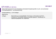 QTI-HUB (ID: INB1054) Online-Self-Assessment für die Feststellung individuelle Kompetenzprofile im Lehr- und Lernkontext (Prüfungsfragenpool) - Lernzielüberprüfung Förderempfehlung Ja mit Auflagen Begründung Auflagen Beschreibung von beispielhaften Test Cases zur Evaluation des PoCs Hinweise zur individuellen Datensouveränität ergänzen / Darstellung von Datenschutzaspekten inkl. Datenfluss © VDI/VDE-IT 87