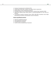 HQR 13 2. Verbesserte Information für Studieninteressierte und Arbeitgeber. 3. Unterstützung der Evaluation und Akkreditierung Y durch Definition von Referenzpunkten. 4. Erleichterung der Curriculumentwicklung Y durch die Bereitstellung eines Referenzrahmens, den es fachspezifisch zu füllen gilt. 5. Höhere Vergleichbarkeit der Qualifikationen im europäischen und internationalen Kontext. Erläuterung des vorliegenden Entwurfs Der vorliegende Qualifikationsrahmen konzentriert sich zunächst auf den Hochschulbereich und schließt die Beschreibung von Schnittstellen zur beruflichen Bildung ein. Aufbauend auf dieser ersten grundlegenden Systematik sollte der QR für andere Bereiche des Bildungssystems (vor allem Berufsbildung, Weiterbildender Bereich) in den nächsten Jahren weiter entwickelt werden. leitlinien Bei der Erarbeitung des Qualifikationsrahmens wurde auf folgende Leitlinien besonderer Wert gelegt: a) Kompatibilität mit einem Europäischen Qualifikationsrahmen Die Diskussion eines nationalen Qualifikationsrahmens wurde in enger Abstimmung mit den Entwicklungen auf europäischer Ebene und den Entwicklungen anderer nationaler Qualifikationsrahmen geführt. Ein wichtiges Ziel ist die Kompatibilität mit einem Europäi schen Qualifikationsrahmen. b) Fachunspezifische Beschreibungen Die fachspezifische Ausgestaltung des Qualifikationsrahmens liegt bei den Fächern und den Hochschulen. Der Qualifikationsrahmen ist in diesem Prozess als Referenzrahmen zu verstehen. c) Hochschultypunabhängige Beschreibungen Der Qualifikationsrahmen unterscheidet grundsätzlich nicht zwischen Fachhochschulen ei nerseits und Universitäten und gleichgestellten Hochschulen andererseits. Die unterschied lichen Bildungsziele dieser Hochschularten sollen jedoch nicht in Frage gestellt, sondern für die Entwicklung der neuen Strukturen nutzbar gemacht werden. d) Einbindung aller relevanten Gruppen Um eine breite Akzeptanz für den Qualifikationsrahmen herzustellen, wurde bereits in der Entwicklungsphase eine Rückkopplung mit allen relevanten Akteuren gesucht (Fakultäten- und Fachbereichstage, Studierende, Sozialpartner, Akkreditierungsagenturen). Erläuterung der Kategorien Die Einteilung in die Kategorien wurde in Anlehnung an das TUNING Project vorgenommen, das sich seit mehreren Jahren länderübergreifend mit der Beschreibung fachspezifischer Qua lifikationen auseinandersetzt. Darüber hinaus wurden die Dublin Descriptors, die von der Joint Quality Initiative entwickelt wurden, als weiterer Orientierungspunkt heran gezogen. Lear ning Outcomes finden sich in beiden hier gewählten Kategorien wieder (Wissen und Verstehen sowie Können). Die Kategorie Wissen und Verstehen beschreibt die erworbenen Kompetenzen mit Blick auf den fachspezifischen Wissenserwerb (Fachkompetenz). Die Kategorie Können um fasst die Kompetenzen, die einen Absolventen dazu befähigen, Wissen anzuwenden (Metho denkompetenz), und einen Wissenstransfer zu leisten. Darüber hinaus finden sich hier die kommunikativen und sozialen Kompetenzen wieder. Internationale Initiativen Joint Qualit y Initiative (informelles Netzwerk für Qualitätssicherung und Akkreditierung von Bachelor- und Masterstudiengängen; Österreich, Belgien, Dänemark, Deutschland, Irland, Niederlande, Norwegen, Spanien, Schweden Schweiz, England) Y Dublin Descrip tors (Definition von Qualifikationen zur Unterscheidung von Bachelor- und Masterstudien gängen)