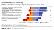Russland als hybride Bedrohung Mehrheit befürwortet aktives Vorgehen gegen „Fake News“ aus dem Ausland teils, teils „Gezielt verbreitete, falsche Nachrichten aus dem Ausland bedrohen 12 3 9 30 31 61 20 die Meinungsbildung in Deutschland.“ „Deutschland sollte falschen Informationen aus anderen Ländern – auch mit der Bundeswehr – aktiv begegnen, um seine Bürgerinnen 17 7 11 28 32 60 19 und Bürger zu schützen.“ „Die größere Gefahr für unsere Lebensart geht von China, nicht von 15 4 11 24 18 42 34 Russland aus.“ „Das militärische Vorgehen Russlands, z.B. in der Ukraine oder in Syrien, bedroht auch die Sicherheit der Bürgerinnen und Bürger in 26 8 19 26 15 40 27 Deutschland.“ „Die NATO – und damit auch Deutschland – sollte auf die veränderte sicherheitspolitische Lage reagieren, und unsere Verbündeten in 29 10 19 22 14 36 31 Osteuropa auch mit militärischer Präsenz unterstützen.“ „Deutschland sollte mehr Verständnis für die Position 44 18 26 14 8 22 29 Russlands haben.“ lehne voll und ganz ab lehne eher ab stimme eher zu stimme voll und ganz zu Frage: Manche Staaten verfolgen ihre weltpolitischen Interessen mit klassischen militärischen Mitteln, aber auch z.B. durch Kampagnen im Internet, indem falsche Informationen gezielt verbreitet werden. Inwiefern stimmen Sie folgenden Aussagen zu oder lehnen sie ab? Basis: 1.504 Befragte | Darstellung: Anteile „stimme voll und ganz zu“ und „stimme eher zu“ in Prozent Informationsangebote des BMVg und der Bundeswehr 2021 17