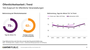 Öffentlichkeitsarbeit | Trend Viel Zuspruch für öffentliche Veranstaltungen Befürwortung der Öffentlichkeitsarbeit Befürwortung „Tage der offenen Tür“ im Trend Direkt nach TdBw (CATI Bus) Jahresende (CAPI) 90 71 69 70 67 65 73% 62% 68 64 64 63 68 73 62 62 50 Tage der offenen Tür Vorträge in Schulen zur Sicherheitspolitik 30 2015 2016 2017 2018 2019 2020* 2021 Frage: Befürworten Sie es oder lehnen Sie es ab oder haben Sie gemischte Gefühle, dass… Basis: 1.504 Befragte (2021) | Angaben in Prozent | *) Abweichende Befragungsmethode: CATI-Befragung Informationsangebote des BMVg und der Bundeswehr 2021 22