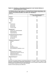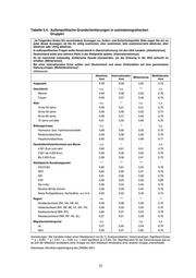 Tabelle 5.6: Einstellung zu Deutschlands Engagement in den Vereinten Nationen in soziodemografischen Gruppen „Im Folgenden finden Sie einige Aussagen zum sicherheitspolitischen Engagement Deutschlands im Rah- men der Vereinten Nationen. Bitte sagen Sie mir zu jeder dieser Aussagen, ob Sie ihr völlig zustimmen, eher zustimmen, teils zustimmen/teils ablehnen, eher ablehnen oder völlig ablehnen.“ (Mittelwerte) Einstellung zu Deutschlands Engagement in den Vereinten Nationen Insgesamt 0,61 Geschlecht n.s. Männer 0,61 Frauen 0,60 Alter n.s. 16 bis 29 Jahre 0,61 30 bis 49 Jahre 0,62 50 bis 69 Jahre 0,60 70 Jahre und älter 0,59 Bildungsniveau n.s. Hochschul- bzw. Fachhochschulreife 0,62 Realschulabschluss 0,61 Hauptschulabschluss 0,60 Haushaltsnettoeinkommen pro Monat ** 4.001 Euro und mehr 0,64 2.001 bis 4.000 Euro 0,61 Bis 2.000 Euro 0,59 Wahlabsicht Bundestagswahl *** CDU/CSU 0,64 SPD 0,64 AfD 0,57 FDP 0,64 Die Linke 0,58 Bündnis 90/Die Grünen 0,60 Keine Parteipräferenz, Nichtwähler, w.n./k.A. 0,58 Region * Norddeutschland (SH, HH, HB, NI) 0,59 Ostdeutschland (MV, BB, BE, ST, SN, TH) 0,59 Süddeutschland (BW, BY) 0,62 Westdeutschland (NW, RP, HE, SL) 0,62 Migrationshintergrund n.s. Ja 0,61 Nein 0,61 Anmerkungen: Die Variable „Einstellung zu Deutschlands Engagement in den Vereinten Nationen“ hat einen Wertebe- reich von [0; 1]. Analyseverfahren: Varianzanalysen, Signifikanzniveau: *** p < 0,001; ** p < 0,01; * p < 0,05; n.s. = nicht signifikant (p ≥ 0,05). Der Signifikanztest für die Varianzanalyse gibt an, ob sich der Mittelwert mindestens einer Gruppe von dem Mittelwert mindestens einer anderen Gruppe unterscheidet. Datenbasis: Bevölkerungsbefragung des ZMSBw 2021. 57