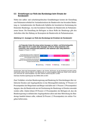 5.5 Einstellungen zur Rolle des Bundestags beim Einsatz der Bundeswehr Neben den außen- und sicherheitspolitischen Grundhaltungen kommt der Einstellung zum Parlamentsvorbehalt bei Auslandseinsätzen der Bundeswehr eine besondere Bedeu- tung zu: Auslandseinsätze der Bundeswehr bedürfen der konstitutiven Zustimmung des Deutschen Bundestags, was den besonderen Charakter der Bundeswehr als Parlaments- armee betont. Die Einstellung der Befragten zu dieser Rolle des Bundestags gibt also Aufschluss über ihre Haltung zur Konzeption der Bundeswehr als Parlamentsarmee. Abbildung 5.5: Aussagen zur Rolle des Bundestags bei Einsätzen der Bundeswehr „Im Folgenden finden Sie einige weitere Aussagen zur Außen- und Sicherheitspolitik. Bitte sagen Sie mir zu jeder dieser Aussagen, ob Sie ihr völlig zustimmen, eher zustimmen, teils zustimmen/teils ablehnen, eher ablehnen oder völlig ablehnen.“ (Angaben in Prozent, n = 2.037) Vgl. 2020 Die Bundesregierung sollte in militärischen Angelegenheiten alleine und ohne Mitwirkung 26 20 49 5 -2 des Bundestags handeln können. Soldatinnen und Soldaten der Bundeswehr sollten nur mit Zustimmung des Bundestags in 67 18 11 4 +3 Einsätze entsendet werden. Zustimmung Teils/teils Ablehnung Weiß nicht/k.A. Anmerkungen: Nicht alle Prozentangaben ergeben in der Summe 100 Prozent, da die Einzelwerte gerundet wurden. Zustimmung: Anteile „Stimme völlig zu“ und „Stimme eher zu“ zusammengefasst; Ablehnung: Anteile „Lehne völlig ab“ und „Lehne eher ab“ zusammengefasst. Vgl. 2020: Differenz Zustimmung 2021 zu 2020. Datenbasis: Bevölkerungsbefragungen des ZMSBw 2020 und 2021. Zum Verhältnis zwischen Bundesregierung und Bundestag bei Entscheidungen über mi- litärische Einsätze und Angelegenheiten ist das Meinungsbild eindeutig: 67 Prozent (+3 Prozentpunkte) der Bürgerinnen und Bürger sind dafür und 11 Prozent (-2 Prozentpunkte) dagegen, dass die Bundeswehr nur mit Zustimmung des Bundestags in Einsätze entsendet werden sollte. Zudem lehnen 49 Prozent (+3 Prozentpunkte) der Befragten ab, dass die Bundesregierung in militärischen Angelegenheiten allein und ohne Mitwirkung des Bun- destags handeln können sollte, während 26 Prozent (-2 Prozentpunkte) ein solches Vor- gehen befürworten. 53