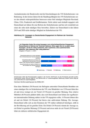 Auslandseinsätze der Bundeswehr sind die Entscheidungen des VN-Sicherheitsrates von Bedeutung. In den letzten Jahren litt die Handlungsfähigkeit des VN-Sicherheitsrates un- ter den oftmals widersprüchlichen Interessen seiner fünf ständigen Mitglieder Russland, China, USA, Frankreich und Großbritannien. Nicht zuletzt auch deshalb engagiert sich Deutschland seit Jahren für eine Reform des Sicherheitsrates und hat sich wiederholt um einen der zehn nicht ständigen Sitze beworben. Zuletzt war Deutschland in den Jahren 2019 und 2020 nicht ständiges Mitglied im Sicherheitsrat der VN. Abbildung 5.6: Aussagen zu Deutschlands Engagement im Rahmen der Vereinten Nationen „Im Folgenden finden Sie einige Aussagen zum sicherheitspolitischen Engagement Deutschlands im Rahmen der Vereinten Nationen. Bitte sagen Sie mir zu jeder dieser Aussagen, ob Sie ihr völlig zustimmen, eher zustimmen, teils zustimmen/teils ablehnen, eher ablehnen oder völlig ablehnen.“ (Angaben in Prozent, n = 2.037) Deutschland sollte sich um einen ständigen Sitz im Sicherheitsrat der Vereinten Nationen 58 23 12 7 bemühen. Deutschland sollte sich zum Schutz der regelbasierten internationalen Ordnung 46 34 14 7 stärker in den Vereinten Nationen engagieren. Deutschland sollte sich stärker militärisch an den Einsätzen der Vereinten Nationen 34 33 28 6 beteiligen. Zustimmung Teils/teils Ablehnung Weiß nicht/k.A. Anmerkungen: Nicht alle Prozentangaben ergeben in der Summe 100 Prozent, da die Einzelwerte gerundet wurden. Zustimmung: Anteile „Stimme völlig zu“ und „Stimme eher zu“ zusammengefasst; Ablehnung: Anteile „Lehne völlig ab“ und „Lehne eher ab“ zusammengefasst. Datenbasis: Bevölkerungsbefragungen des ZMSBw 2021. Eine klare Mehrheit (58 Prozent) der Befragten unterstützt Deutschlands Bemühen um einen ständigen Sitz im Sicherheitsrat der VN, eine Minderheit von 12 Prozent lehnt dies ab und etwas weniger als ein Viertel (23 Prozent) ist geteilter Meinung. Eine relative Mehrheit (46 Prozent) plädiert dafür, dass sich Deutschland zum Schutz der regelbasier- ten internationalen Ordnung stärker in den VN engagieren sollte, 14 Prozent lehnen dies ab und ein Drittel (34 Prozent) hat hierzu eine ambivalente Haltung. Die Aussage, Deutschland sollte sich an den Einsätzen der VN stärker militärisch beteiligen, stößt in der Bevölkerung auf ein geteiltes Echo: Ein Drittel (34 Prozent) stimmt der Aussage zu, ein Drittel ist geteilter Meinung (33 Prozent) und etwas mehr als ein Viertel (28 Prozent) lehnt ein stärkeres militärisches Engagement ab. 56
