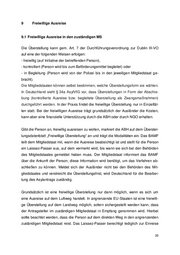 9 Freiwillige Ausreise 9.1 Freiwillige Ausreise in den zuständigen MS Die Überstellung kann gem. Art. 7 der Durchführungsverordnung zur Dublin III-VO auf eine der folgenden Weisen erfolgen: - freiwillig (auf Initiative der betreffenden Person), - kontrolliert (Person wird bis zum Beförderungsmittel begleitet) oder - in Begleitung (Person wird von der Polizei bis in den jeweiligen Mitgliedstaat ge- bracht). Die Mitgliedstaaten können selbst bestimmen, welche Überstellungsform sie wählen. In Deutschland sieht § 34a AsylVfG vor, dass Überstellungen in Form der Abschie- bung (kontrollierte Ausreise bzw. begleitete Überstellung als Zwangsmaßnahmen) durchgeführt werden. In der Praxis findet die freiwillige Überstellung nur in Einzelfäl- len statt. Bei der freiwilligen Ausreise trägt grundsätzlich der Ausländer die Kosten, kann aber eine finanzielle Unterstützung durch die ABH oder durch NGO erhalten. Gibt die Person an, freiwillig ausreisen zu wollen, markiert die ABH auf dem Überstel- lungsdatenblatt „Freiwillige Überstellung“ an und trägt die Modalitäten ein. Das BAMF teilt dem Mitgliedstaat mit, wann die Ausreise beabsichtigt ist und stellt für die Person ein Laissez-Passer aus, auf dem vermerkt wird, bis wann sie sich bei den Behörden des Mitgliedstaates gemeldet haben muss. Der Mitgliedstaat informiert das BAMF über die Ankunft der Person; diese Information wird benötigt, um das Verfahren ab- schließen zu können. Meldet sich der Ausländer nicht bei den Behörden des Mit- gliedstaates und verstreicht die Überstellungsfrist, wird Deutschland für die Bearbei- tung des Asylantrags zuständig. Grundsätzlich ist eine freiwillige Überstellung nur dann möglich, wenn es sich um eine Ausreise auf dem Luftweg handelt. In angrenzende EU-Staaten ist eine freiwilli- ge Überstellung auf dem Landweg möglich, sofern sichergestellt werden kann, dass der Antragsteller im zuständigen Mitgliedstaat in Empfang genommen wird. Hierbei sollte beachtet werden, dass die Person auf dem direkten Weg in den angrenzenden zuständigen Mitgliedstaat reist. Das Laissez-Passer berechtigt lediglich zur Einreise 20