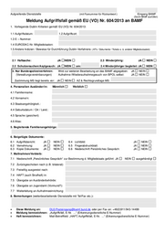 Aufgreifende Dienststelle (mit Faxnummer für Rückantwort ) Eingang BAMF (Durch BAMF ausfüllen) Meldung Aufgriffsfall gemäß EU (VO) Nr. 604/2013 an BAMF 1. Vorliegende Dublin Kriterien gemäß EU (VO) Nr. 604/2013: 1.1 Aufgriffsdatum: 1.2 Aufgriffs ort: 1.3 E – Nummer: 1.4 EURODA C-Nr. Mitgliedstaaten: 1.5 Andere Indizien / Beweise für Durchführung Dublin-Verfahrens ( AT's / Dokumente / Tickets o. ä. anderer Mitgliedsstaaten): 2.1 Haftsache: JA NEIN 2.3 Minderjährig: JA NEI N 2.2 Schutzersuchen/Asylgesuch: JA NEIN am: 2.4 Minderjähriger begleitet: JA NEIN 3. Nur Bunde spolizeiverfahren: Wird zur weiteren Bearbeitung an das BAMF abgegeben: JA NEIN (Verwalt ungs vereinbarungen) Aufnahme-/Wiederaufnahmegesuch von BPOL selbst: JA NEIN Zustimmung MS liegt bereits vor: JA NEIN AZ & Rechtsgrundlage MS: 4. Personalien Ausländer/in: Männlich Weiblich 4.1 Familienname: 4.2 Vorname/n: 4.3 Staatsangehörigkeit.: 4.4 Geburtsdatum / Ort / Land.: 4.5 Sprache (gesichert) 4.6 Alias: 5. Begleitende Familienangehörige: 6. Beigefügte Dokumente: 6.1 Aufgriffsbericht: JA NEIN 6.4 Lichtbild: JA NEIN 6.2 Vernehmung: JA NEIN 6.5 Fingerabdruckblatt: JA NEIN 6.3 Kopie Dokumente: JA NEIN 6.6 Niederschrift Persönlic hes Gespräch: JA NEIN 7. Maßnahmen/Verbleib: 7.1 Niederschrift „Persönliches Gespräch“ zur Bestimmung d. Mitgliedstaats geführt: JA NEIN ausgehändigt 7.2 Zurückgeschoben nach (z.B. bilateral): 7.3 Freiwillig ausgereist nach: 7.4 HAFT (auch Strafhaft) in: 7.5 Übergabe an Ausländerbehörde: 7.6 Übergabe an Jugendamt (Vormund?): 7.7 Weiterleitung an Aufnahmeeinrichtung: 8. Bemerkungen (weiterbearbeitende Dienststelle mit Tel/Fax etc.): Diese Meldung an: DU2-Posteingang@bamf. bund.de oder per Fax an: +49(0)911/943-14499 Meldung kennzeichnen: „Aufgriffs fall, E-Nr. ...“ (Erkennungsdienstliche E-Nummer) Haft kennzeichnen: Mail-Betrefffeld: „HAFT, Aufgriffsfall, E-Nr. ...“ (Erkennungsdienstliche E-Nummer)