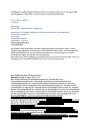 nachfolgende E-Mail des Bundesministerium des Innern, für Bau und Heimat vom 3. August 2021 nebst Anlage wird mit der Bitte um Kenntnisnahme und Beachtung übersandt. Mit freundlichen Grüßen Im Auftrag -- Andrea Vogt Referat 725-1 Aufenthaltsrecht, Einbürgerung MINISTERIUM FÜR FAMILIE, FRAUEN, KULTUR UND INTEGRATION RHEINLAND-PFALZ Kaiser-Friedrich-Straße 5a 55116 Mainz Telefon 06131 16-5107 Telefax 06131 16-175107 Andrea.Vogt@mffki.rlp.de www.mffki.rlp.de Diese E-Mail enthält vertrauliche und/oder rechtlich geschützte Informationen. Wenn Sie nicht der/die richtige Adressat:in sind oder diese E-Mail irrtümlich erhalten haben, informieren Sie bitte sofort den/die Absender:in und vernichten Sie diese Mail. Das unerlaubte Kopieren sowie die unbefugte Weitergabe dieser E-Mail sind nicht gestattet. Informationen zur Datenverarbeitung, zum Datenschutz und zu Ihren Rechten finden Sie auf unserer Homepage unter https://mffki.rlp.de/de/ueber-das-ministerium/datenschutz/ Von: M2@bmi.bund.de <M2@bmi.bund.de> Gesendet: Dienstag, 3. August 2021 11:18 An: Poststelle (BY Innen) <Poststelle@stmi.bayern.de>; Poststelle (BE Innen) <poststelle@seninnds.berlin.de>; poststelle@mi.brandenburg.de; Poststelle (HH Innen) <poststelle@bis.hamburg.de>; Justizverwaltung Baden-Württemberg (Ministerium der Justiz) <poststelle@jum.bwl.de>; Poststelle (IM HE) <poststelle@hmdis.hessen.de>; Poststelle (IM MV) <Poststelle@im.mv-regierung.de>; Poststelle (IM NI) <poststelle@mi.niedersachsen.de>; Poststelle (MFFKI) <Poststelle@mffki.rlp.de>; Poststelle (IM SL) <poststelle@innen.saarland.de>; Poststelle (IM SN) <poststelle@smi.sachsen.de>; Poststelle (IM ST) <poststelle@mi.sachsen-anhalt.de>; Poststelle (IM SH) <poststelle@im.landsh.de>; poststelle@tmmjv.thueringen.de; poststelle@mkffi.nrw.de Cc: Sachgebiet-F2@stmi.bayern.de; auslaenderrecht@seninnsport.berlin.de; Peter.Marhofer@seninnsport.berlin.de; Anke.Rienitz@SenInnDS.berlin.de; auslaenderangelegenheiten@mik.brandenburg.de; andreas.keinath@mi.brandenburg.de; Poststelle (HB Innen) <office@inneres.bremen.de>; lothar.meyer@inneres.bremen.de; anke.graf@im.bwl.de; BfIHHAuslRundStAR@bis.hamburg.de; gunnar.henkelmann@bis.hamburg.de; nora.matthiesen@bis.hamburg.de; Aufenthaltsrecht@hmdis.hessen.de; Marcus.Wagner@HMDIS.hessen.de; Ines.Berg@im.mv-regierung.de; Jens.Radeke@im.mv- regierung.de; MI-Referat64@mi.niedersachsen.de; Benjamin.goltsche@mi.niedersachsen.de; 0701- Integration (MFFKI) <Integration@mffki.rlp.de>; Muth, Horst (MFFKI) <Horst.Muth@mffki.rlp.de>; G.Kessler@innen.saarland.de; auslaender-staatsangehoerigkeit@smi.sachsen.de; christa.dieckmann@mi.sachsen-anhalt.de; wolfgang.werner@mi.sachsen-anhalt.de; Gärtner, Dirk (SH Innen) <dirk.gaertner@im.landsh.de>; Sabrina.Mustert@im.landsh.de;