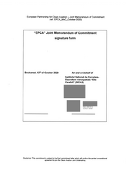 European Partnership for Clean Aviation — Joint Memorandum of Commitment (ref. EPCA_MoC_October 2020) “EPCA” Joint Memorandum of Commitment signature form Bucharest, 12" of October 2020 for and on behalf of Institutul National de Cercetare- Dezvoltare Aerospatiala “Elie Carafoli” (INCAS) Date: 2020.10,12 15:14:31 +03'00' Disclaimer: This commitment is subject to the final commitment letter which will confirm the parties’ unconditional agreement to join the Clean Aviation Joint Undertaking.