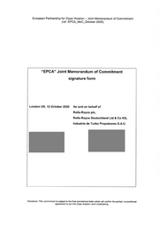European Partnership for Clean Aviation — Joint Memorandum of Commitment (ref. EPCA_MoC_October 2020) “EPCA” Joint Memorandum of Commitment signature form London UK, 12 October 2020 forand on behalf of Rolls-Royce plc, Rolls-Royce Deutschland Ltd & CoKG, Industria de Turbo Propulsores S.A.U. Disclaimer: This commitment is subject to the final commitment letter which will confirm the parties’ unconditional agreement to join the Clean Aviation Joint Undertaking.