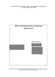European Partnership for Clean Aviation — Joint Memorandum of Commitment (ref, EPCA_MoC_October 2020) “EPCA” Joint Memorandum of Commitment signature form Thales AVS SAS France Disclaimer: This commitment is subject to the final commitment letter which will confirm the parties’ unconditional agreement to join the Clean Aviation Joint Undertaking.