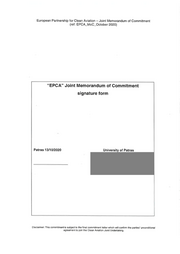 European Partnership for Clean Aviation - Joint Memorandum of Commitment (ref. EPCA_MoC_October 2020) “EPCA” Joint Memorandum of Commitment signature form Patras 13/10/2020 University of Patras Disclaimer: This commitment is subject to the final commitment letter which will confirm the parties’ unconditional agreement to join the Clean Aviation Joint Undertaking.