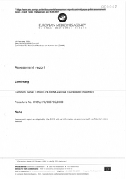 U (f? ÜÜ47 7 https:/lwww.ema.europa.eulenIdocuments/assessment-reportlcomirnaty-epar-public-assessment- report_en.pdf Seite 23 abgerufen am 06.04.2021 EUROPEAN MEDICINES AGENCY S C I E NCL MEDICINES HEALTH 19 February 2021 EMA/707383/2020 Corr.1*‘ _ Committee for Medicinal Products for Human Use (CHMP) Assessment report Comirnaty Commoh name: COVID—19 mRNA vaccine (nucleoside-modified) Procedure No. EMEA/H/C/005735/0000 Note Assessment report as adopted by the CHMP with all information of a commercially confidential nature deleted. E 1 * Correct/‘on dated 19 February 2021 to c/arify ERA Statement Official address Dnamenict) Scarlattilaan 6 o 1083 HS Anwsterdam o The Netherlarwds Address for visits and deliveries Rafer" m \--n.=.'\-v.errn:.europe3.e\J/hov=: trwfsrxd-us; Send us a question (30 ro x-vxvvqxernxa.c2uropxn‚cun/rcxntaat Telephone +31 (0)88 781 6000 An agentv oFthe Eurouean Unten {c} European Mechcines Agency, 2021. Reproduction i3 authoriserfl prcxvided the source «s acknowledged.