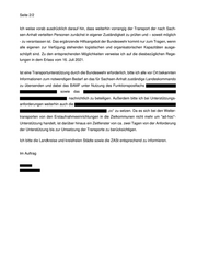 Seite 2/2 Ich weise vorab ausdrücklich darauf hin, dass weiterhin vorrangig der Transport der nach Sach- sen-Anhalt verteilten Personen zunächst in eigener Zuständigkeit zu prüfen und – soweit möglich - zu veranlassen ist. Das ergänzende Hilfsangebot der Bundeswehr kommt nur zum Tragen, wenn alle eigenen zur Verfügung stehenden logistischen und organisatorischen Kapazitäten ausge- schöpft sind. Zu den entsprechenden Möglichkeiten verweise ich auf die diesbezüglichen Rege- lungen in dem Erlass vom 16. Juli 2021. Ist eine Transportunterstützung durch die Bundeswehr erforderlich, bitte ich alle vor Ort bekannten Informationen zum notwendigen Bedarf an das für Sachsen-Anhalt zuständige Landeskommando zu übersenden und dabei das BAMF unter Nutzung des Funktionspostfachs sowie das nachrichtlich zu beteiligen. Außerdem bitte ich bei Unterstützungs- anforderungen weiterhin auch die „cc“ zu setzen. Da es sich bei den Weiter- transporten von den Erstaufnahmeeinrichtungen in die Zielkommunen nicht mehr um "ad-hoc"- Unterstützung handelt, ist darüber hinaus ein Zeitfenster von ca. zwei Tagen von der Anforderung der Unterstützung bis zur Umsetzung der Transporte zu berücksichtigen. Ich bitte die Landkreise und kreisfreien Städte sowie die ZASt entsprechend zu informieren. Im Auftrag