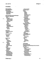 ZDv. 65/101 19 Aufbau ’ Fahrzeugaufbau Personenkraftwagen Nutzkraftwagen Lastkraftwagen Speziatlastkraftwagen Kraftomnibus Zugmaschine Fahrzeugaufbau Personenkrattwagen Karosserie, selbsttragend Dach Dachsäuls vordere (A-Säule} mittlere (B-Säule) hintere (G-Säule) Dachrahmen vom seitlich hinten Bodengnuppe Bodenbtech Gelenkwellentunne! Seitanteil hinteres vorderes Fahrerhaus Frontlenkerfahrerhaus kippbar Haubenfahrerhaus Fahrerkabine getrennt, integriert Ausstattung Türen Dreitür Fangband Türfeststeller Klapptär Zugfeder Gasfeder Schiebetür Außenschwingtür Falttür Türgrft Türgriffsügel Griffschate Türdrücker Türschloß Zapfenschloß Gabeifallenschloß Zentratriegelschloß Sperrkinkenschloß Zentralverriegalung unterdrusckbetätigt. Änderung i Anlage 2 elektrisch betätigt Türschließanlage Fenster Scheibe klappbar steckbar schiebbar Windschutzscheibe ‚Seitenscheibe Heckscheibe Fensterheber handbetätigt eiektrisch betätigt Sicherheitsglas Einschicht. Mehrschicht Verbundglas Sicherheilsausstatiung Sicherheitsgurt Zweipunkt Beckengurt Dreipunkt Brustgurt Beckengurt Gurtrolle Rollansperre Gurischloß Hosenträgergurt Airbag Überollbügel Sicherheitslenksäule. ‚Scheibenwischer. nm: Andrückteder Gastänge Blatt. Gummi Wischkants Federschiene Motor Tankaufbau Fahrzeugsystematik Tankfahrzeug (Straßentahrzeug mit fest verbunde- nem Tarık) Tankkraftwagen Tankzug Tankkraftwagenzug Tankkraftwagen Tankantıänger Tankzugmaschinenzug Zugmaschine Tankanhänger Tarıksatlelkraftfahrzeug' Sattelzugmachine Tanksattelanhänger 19-1