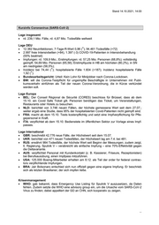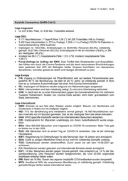 Stand 12.10.2021, 17:00 Kurzinfo Coronavirus (SARS-CoV-2) Lage insgesamt rd. 238,3 Mio. Fälle, rd. 4,86 Mio. Todesfälle weltweit Lage DEU 4.971 Neuinfektionen; 7-Tage-R-Wert 0,98 (ꜜ); 94.297 Todesfälle (+88) 3.077 freie Intensivbetten (-325), 1.382 (+ 28) COVID-19-Patienten in Intensivbehandlung (56% beatmet) Impfungen: rd. 109,1 Mio.; Erstimpfungen: rd. 57,02 Mio. Personen (68,6%); vollständig geimpft: 54,31 Mio. Personen (65,3%); Erstimpfquote in HB am höchsten (79,9%), in SN am niedrigsten (58,2%); Inzidenz bei 65,8 (ꜛ); hospitalisierte Fälle 1.417 (+105); Inzidenz hospitalisierte Fälle 1,70 (ꜛ). BMG: Zahl der Impfdurchbrüche in den vergangenen Monaten gestiegen. Von Mitte Au- gust bis Anfang September 1.186 Corona-Fälle, die "intensivmedizinisch versorgt" werden mussten, davon waren 119 Personen geimpft, 10,03%. BAG Wohnungslosenhilfe: fordert weiter kostenlose Corona-Tests für Obdachlose. BE: Empfänger staatlicher Transferleistungen sollen weiterhin die Möglichkeit zu kostenlo- sen Corona-Test haben. GMK: Keine einheitliche Testpflicht für Mitarbeiter mit Kundenkontakt, § 28 IfSG sei aber grundsätzlich geeignet, Testvorlagepflicht kann nach Landesrecht erlassen werden. BiB: Lebenserwartung in Deutschland ist durch Covid-19 erstmals seit Jahren leicht ge- sunken. Zwischen 2019 und 2020 sank der Wert bei Frauen um 0,1 Jahre, bei Männern um 0,3 Jahre. BMG: bis zum 15. 9. sind 5,26 Milliarden Euro für Leistungen im Zuge der Coronavirus- Testverordnung aus dem Gesundheitsfonds ausgezahlt worden (Bürgertests, Kontingent- testungen in Einrichtungen und Abstriche bei PCR-Testungen). Lufthansa: hat einen Teil der staatlichen Coronahilfen zurückgezahlt. Sie überwies 1,5 Milliarden EUR an den Wirtschaftsstabilisierungsfonds; eine weitere Milliarde EUR folgt bis Ende des Jahres. Apothekerverband Nordrhein: fordert, dass Corona-Impfungen künftig auch in Apothe- ken durchgeführt werden. Mit etwa 1.000 für das Impfen ausgebildeten Apothekern könn- ten Corona-Impfungen z. B. unverzüglich in 500 Apotheken im Rheinland stattfinden. Lage Europa ROU: berichtet, dass die vierte Welle eingesetzt hat und am 12.10. 209 Todesfälle – ggü. 46 vor einem Monat – registriert wurden; die Impfquote von vollständig Geimpften liegt am 12.10. bei 28,7% ggü. 27% vor einem Monat. Lage International GBR: der Bericht der Unterhaus-Ausschüsse für Wissenschaft und Gesundheit stellt fest, der Lockdown Ende März kam verspätet; eine höhere Todesrate war die Konsequenz: Bzgl. genauer Zahlen blieb der Bericht vage. RUS: bestätigt 957 Todesfälle, 11 Fälle weniger als das Allzeithoch von 968 Fällen vor 2 Tagen. Ursächlich ist die niedrige Impfquote; nur 31,2% sind vollständig geimpft. TUR: unterstützt UZB mit 200.000 Impfdosen des Herstellers Sinovac. IND: berichtet von 18.132 neuen Fällen, der niedrigste Wert seit 215 Tagen. THA: beabsichtigt ab 1.11. seine Grenze für geimpfte Touristen aus zehn Ländern, darun- ter DEU, zu öffnen. JPN: beschreibt 49 Fälle und verzeichnet damit ein Allzeittief; eine Studie berichtet, dass 80% der Todesfälle – bei unter 60-Jährigen – Männer beträfen. ...