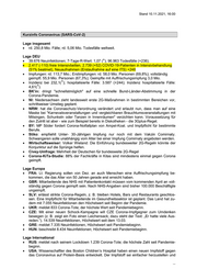 Stand 10.11.2021, 16:00 Kurzinfo Coronavirus (SARS-CoV-2) Lage insgesamt rd. 250,8 Mio. Fälle; rd. 5,06 Mio. Todesfälle weltweit. Lage DEU 39.676 Neuinfektionen; 7-Tage-R-Wert: 1,07 (ꜜ); 96.963 Todesfälle (+236). 2.417 (-110) freie Intensivbetten, 2.739 (+52) COVID-19-Patienten in Intensivbehandlung (51% beatmet), Neuaufnahmen (Erstaufnahme auf eine ITS) +248 Impfungen: rd. 113,7 Mio.; Erstimpfungen: rd. 58,0 Mio. Personen (69,8%); vollständig geimpft: 55,9 Mio. Personen (67,3%); Geimpfte mit Auffrischungsimpfung 3,0 Mio. Inzidenz bei 232,1(ꜛ); hospitalisierte Fälle: 3.587 (+244); Inzidenz hospitalisierte Fälle: 4,61(ꜛ). BK’in: dringt "schnellstmöglich" auf eine schnelle Bund-Länder-Abstimmung in der Corona-Pandemie. NI: Niedersachsen zieht landesweit erste 2G-Maßnahmen in bestimmten Bereichen vor, schrittweiser Umstieg geplant. NRW: hat die Coronaschutz-Verordnung verändert und erlaubt nun, dass man auf eine Maske bei "Karnevalsveranstaltungen und vergleichbaren Brauchtumsveranstaltungen mit Mitsingen, Schunkeln oder Tanzen in Innenräumen" verzichten kann. Voraussetzung für den Zutritt ist aber - wie zum Beispiel bereits in Diskotheken - die 3Gplus-Regel. BY: MP Söder fordert Corona-Notfallplan von Ampel-Koal. und Impfpflicht für bestimmte Berufe. Stiko: empfiehlt Unter- 30-Jährigen Impfung nur noch mit dem Vakzin Comirnaty. Schwangeren solle unabhängig vom Alter bei einer Impfung Comirnaty angeboten werden. Wirtschaftsweiser: Volker Wieland: Die Einführung bundesweiter 2G-Regeln könnte der Konjunktur auf die Sprünge helfen. Civey-Umfrage: Mehrheit der Deutschen für bundesweite 2G-Regel Corona-KiTa-Studie: 88% der Fachkräfte in Kitas sind mindestens einmal gegen Corona geimpft. Lage Europa FRA: Lt. Regierung sollen von Dez. an auch Menschen eine Auffrischungsimpfung be- kommen, die das Alter von 50 Jahren gerade erst erreicht haben. GBR: Mitarbeitende des NHS mit Patientenkontakt müssen vom kommenden April an voll- ständig gegen Corona geimpft sein. Nach NHS-Angaben sind bisher 100.000 Beschäftigte ungeimpft. SLV: erlässt strikte Corona-Regeln, z. B. bleiben Hotels, Bars und Restaurants geschlos- sen. Eine Impfpflicht für Mitarbeitende im Gesundheitssektor ist geplant. Das Land hat zu- dem mit 7.055 Neuinfektionen den Höchstwert seit Beginn der Pandemie. UKR: meldet 833 Corona-Tote; der höchste Wert seit Pandemiebeginn. CZE: Mit einer neuen Schock-Kampagne will CZE Corona-Impfgegner zum Umdenken bewegen (z. B. zeigt ein Foto einen Leichensack; dazu steht der Text: „Er hatte viele Aus- reden.“). 14.539 Neuinfektionen, Höchstwert seit dem 13.03. GRE: meldet 7.335 Neuinfektionen, Höchstwert seit Pandemiebeginn. HUN: beschreibt 8.434 Neuinfektionen; Höchstwert seit Pandemiebeginn. Lage International RUS: meldet nach seinem Lockdown 1.239 Corona-Tote; die höchste Zahl seit Pandemie- beginn. USA: Wissenschaftler des Boston Children’s Hospital haben einen neuen Impfstoff gegen das Coronavirus auf Protein-Basis entwickelt. Der Impfstoff sei einfacher herzustellen und ...