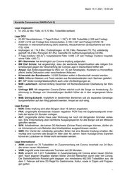 Stand: 16.11.2021, 13:45 Uhr Kurzinfo Coronavirus (SARS-CoV-2) Lage insgesamt rd. 253,86 Mio. Fälle; rd. 5,11 Mio. Todesfälle weltweit. Lage DEU 32.048 Neuinfektionen; 7-Tage-R-Wert: 1,09(ꜜ); 97.980 Todesfälle (+265). 2.478 (-219) freie Intensivbetten, 3.280 (+90) COVID-19-Patienten in Intensivbehandlung (50% beatmet), Neuaufnahmen (Erstaufnahme auf eine ITS) +286. Impfungen: rd. 115,2 Mio.; Erstimpfungen: rd. 58,3 Mio. Personen (70,1%); vollständig geimpft: 56,2 Mio. Personen (67,6%); Geimpfte mit Auffrischungsimpfung 4,0 Mio. 7-Tage-Inzidenz 312,4(ꜛ); hospitalisierte Fälle: 3.896 (+146); Inzidenz hospitalisierte Fälle: 4,86 (ꜛ). BY: AfD will 2G-Regeln mit einer Popularklage vor dem Bayerischen Verfassungsgerichts- hof stoppen. BM Scholz: befürwortet Debatte über Corona-Impfpflicht für bestimmte Berufsgruppen z.B. in Pflegeheimen. GEW: Gewerkschaft Erziehung und Wissenschaft lehnt Impfpflicht für bestimmte Berufs- gruppen ab. Städte- und Gemeindebund hält kurzfristige Wiederaufstellung der Corona-Impfzentren für unrealistisch. FDP: hält an Ende der epidemischen Notlage fest. BW: ab Mittwoch 2G-Regel Lage Europa NOR: bietet allen über 18-Jährigen Booster-Impfung an. AUT: BK Schallenberg bewertet Teillockdown angesichts steigender Impfzahlen als wirk- sam. HRV: führt 3G-Regel in allen Amtsgebäuden ein. Nach Berichten sollen vermehrt russi- sche Touristen Impfungen in HRV wahrnehmen, da Impfungen in HRV auch für Touristen frei zugänglich sind. BEL: Impflicht für Gesundheitspersonal soll ab dem 1. April greifen. GBR: PM Johnson hat angekündigt, dass zukünftig nur noch 3-fach Geimpfte als vollstän- dig geimpft gelten sollen. Ein konkreter Zeitplan wurde nicht genannt. ESP: 7-Tages-Inzidenz steigt auf 48 Neuinfizierte pro 100.000 Einwohner. Vor einem Mo- nat lag der Inzidenzwert bei 18. Die Impfquote liegt bei ca. 80%. UKR: will Anreiz zur Impfung durch Geldprämie stärken. Impfwillige sollen umgerechnet 33 EUR für eine Impfung erhalten. Gestern starben 442 Menschen an Corona Das ist der zweithöchste Wert weltweit nach RUS. Die Impfquote liegt bei 28%. ITA: verschärft Maßnahmen. Passagieranzahl in Taxis wird begrenzt und Züge können bei Coronaverdachtsfällen angehalten und teildesinfiziert werden. CYP: bietet allen über 18-Jähringen Booster-Impfung an. SVK: In den Krankenhäusern verschlechtert sich die Lage zunehmend. In der Region Presov sind 96% der Betten mit Beatmungskapazitäten belegt. Patienten werden in Kran- kenhäuser anderer Regionen umverteilt. CZE: Soldaten werden in überlasteten Krankenhäusern u.a. als Hilfskräfte im Pflegedienst eingesetzt. NLD: Die Rekordinfektionszahlen machen sich auch in den Krankenhäusern bemerkbar. Mit der Erreichung und Überschreitung des bisherigen Spitzenwerts aus dem vergangenen Winter von 2.800 Coronapatienten in Krankenhäusern wird in den nächsten Tagen ge- rechnet. ...