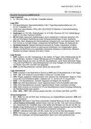 Stand 08.07.2021, 15:00 Uhr Ref. 312 (Abteilung 2) Kurzinfo Coronavirus (SARS-CoV-2) Lage insgesamt rd. 184,5 Mio. Fälle, rd. 3,99 Mio. Todesfälle weltweit. Lage DEU 970 Neuinfektionen, Reproduktionsfaktor 0,99; 7-Tage-Reproduktionsfaktor bei 1,01, 91.141 Todesfälle (+31). 3.640 freie Intensivbetten (16%), 484 (-25) COVID-19 Patienten in Intensivbehandlung (63% beatmet). Impfungen: rd. 78,7 Mio. Erstimpfungen: rd. 47,5 Mio. Personen (57,1%). Vollständig ge- impft: rd. 33,2 Mio. Personen (39,9%). BE BM Müller intensiviert Impfkampagne: durch Impfaufrufe in mehreren Sprachen, Hin- weis auf Wichtigkeit Zweitimfpung sowie Schwerpunktimpfungen in best. Quartieren. Divi Präs. Marx: Belegung der Intensivstationen entspannt sich, aus intensivmediz. Sicht wird Corona zu normaler Grippe, „entspannter Herbst/Winter“ hänge von Impfquote ab. Apothekerverband: digitaler Genesenennachweis ab Freitag in Apotheken erhältlich. Studie: Delta-Variante scheint im Laborversuch Antikörpern von Erstgeimpften (Astra- Zeneca und BioNTech) und ungeimpften Genesenen teilweise zu entkommen, effiziente Reaktion bei beiden Vakzinen erst nach 2. Dosis. Lage Europa ESP: Inzidenz von 252, Verdopplung in den letzten 14 Tagen; hohe Infektionsrate bei 20- bis 29-Jährigen, Inzidenz in dieser Altersgruppe auf 814 gestiegen (Dienstag noch 100). FRA: Delta-Variante bei mehr als 40% der Neuinfektionen, vierte Welle befürchtet; Regie- rung prüft Impf-Pflicht für Gesundheitspersonal und neue Auflagen für nicht Immunisierte; von Reisen nach PRT und ESP wird abgeraten. GBR: 32.548 Neuinfektionen, höchster Stand seit Januar 2021. Lage International CHN: Lockdown in der Stadt Ruili an Grenze zu MMR nach 23 Neuinfektionen in vier Tagen. CYP – EU: CYP erhält EU Corona-Hilfen in Höhe von 1,23 Mrd. EUR. JPN: Wegen steigender Infektionszahlen wird während der Olympischen Spiele in Tokio erneut der Corona-Notstand gelten, vorläufig vom 12. Juli bis zum 12. August 2021. KOR: 1.275 Neuinfektionen, höchster Tageswert seit Beginn der Pandemie. MMR: fast 4000 Neuinfektionen, neuer Tageshöchstwert, hohe Dunkelziffer befürchtet. TUN: 9.823 Neuinfektionen, erneuter Tageshöchstwert; lokale Lockdowns verhängt. USA: Delta-Variante nun dominant (51,7% der Neuinfektionen); keine frühzeitige Aufhebung der Reisebeschränkungen geplant. USA – BOL – PRY: USA schicken jeweils eine Mio. J & J-Dosen nach BOL und PRY. Krisenmanagement EU – RUS: EU will mit RUS über Anerkennung von Impfzertifikaten sprechen, CHE wird bereits anerkannt. Impfstoffe: BRA lässt in Sao Paolo entwickelten Impfstoff Butanvac für klin. Studien zu. Johns-Hopkins-Universität: weltweit bisher mehr als vier Mio. Tote nach Corona-Infektio- nen, Gesamtzahl der Todesfälle stieg in den letzten drei Monaten von drei auf vier Mio. an. Studie: Einige Medikamente zur Krebsabwehr haben negative Auswirkungen auf die Effek- tivität von COVID-19-Impfungen, da sie die Immunabwehr schwächen. UNICEF: Lieferabkommen über 220 Mio. Dosen J&J an AU bis 2022 geschlossen. WHO: Warnung vor vorzeitigen Lockerungen, das Erreichte dürfe nicht verspielt werden; Effekte von Impfungen auf Pandemiegeschehen seien noch nicht ausreichend klar. ...