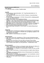 Stand 13.07.2021, 16:45 Uhr Ref. 312 (Abteilung 2) Kurzinfo Coronavirus (SARS-CoV-2) Lage insgesamt rd. 187,23 Mio. Fälle, rd. 4,03 Mio. Todesfälle weltweit. Lage DEU 646 Neuinfektionen, Reproduktionsfaktor 1,29; 7-Tage-Reproduktionsfaktor bei 1,15, 91.259 Todesfälle (+26). 4.210 freie Intensivbetten (18%), 435 (+2) COVID-19 Patienten in Intensivbehandlung (64% beatmet). 82,4 Mio. Impfungen. Erstimpfungen: rd. 48,8 Mio. Personen (58,7%). Vollständig geimpft: rd. 35,77 Mio. Personen (43,0 %). STIKO: beurteilt baldige Auffrischungsimpfung skeptisch. Ethikrat: lt. Fr. Prof. Buyx ist eine Impfpflicht für Lehrkräfte und Gesundheitsfachpersonal verzichtbar. In DEU in diesen Sektoren deutlich höhere Impfbereitschaft als bspw. in FRA. BÄK: Präs. Dr. Reinhardt fordert intensivere Informationskampagne zum Impfen. Ifo-Umfrage: Nach wie vor Existenzangst bei Veranstaltern, Tourismus- und Gastgewerbe. NW: Große Impfstudie mit 30.000 Schülern im Kreis Siegen-Wittgenstein verschoben. SN: bei Inzidenzen entfällt die Maskenpflicht beim Einkauf. BY: Niedrigschwellige Impfangebote in Schwimmbädern und Fastfood-Restaurants ge- plant. Lage Europa FRA: Rekordzahl an Anmeldungen für Impftermine nach Ankündigung von Verschärfungen der Maßnahmen (und Ausnahmen für Geimpfte) durch die Regierung; Impfpflicht im Ge- sundheitswesen wird eingeführt. GRC: Impfpflicht im Gesundheitswesen wird eingeführt. Lage International JPN: Abgabe mehrerer Mio. Impfstoffdosen an TWN und andere Nachbarländer geplant. IRQ: Brand auf einer Corona-Station in südirakischer Stadt Nasiriyya führt zu 52 Toten und 67 Verletzten. ISR: Zahl neuer Corona-Fälle mit 730 neuen Fällen auf höchstem Stand seit März. RUS-IND: RUS hat mit weltgrößtem Impfstoffhersteller in IND Abkommen über die Herstel- lung von 300 Mio. Dosen Sputnik V pro Jahr geschlossen – Produktionsstart im Sept. Krisenmanagement Covax: Vertragsschluss mit Sinovac und Sinopharm (beide CHN) über die Lieferung von 110 Mio. Dosen bis Okt. sowie Option über 440 Mio. Dosen bis Mitte 2022. Doppelinfektionen: Von Infektionen mit unterschiedlichen Varianten wird auch aus BRA und PRT berichtet. J&J: FDA ergänzt Warnhinweise um Autoimmunkrankheit als mögliche seltene Nebenwir- kung. Thrombose: Laut kanadischen Medizinern könne ein Plasmaaustausch eine impfstoffindu- zierte Thrombose durchbrechen. WHO: Warnung vor zu schnellen Auffrischungsimpfungen in den Industrieländern, während in vielen Regionen noch Impfstoffknappheit herrscht. USA: MoH und CDC erachten Booster Impfungen für Vollgeimpfte derzeit als noch nicht notwendig an. ...