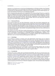 4.2 Infrastruktur 61 Sämtliche Linux-Distributionen und die Server-Betriebssysteme von Windows enthalten einen Standard- konformen DHCP-Server. Die Funktionalität eines DHCP-Clients ist bei Windows, Linux und Mac OS X ein Bestandteil des Betriebssystems. Aufgrund des offenen Standards sind die DHCP-Dienste und - Clients unter Windows, Mac OS und Linux vollständig kompatibel. Bei der Umstellung des gegenwärtig noch eingesetzten IPv4 auf das künftige IPv6 gilt es zu beachten, dass die Verfolgbarkeit des einzelnen Anwenders durch die dauerhafte Vergabe eindeutiger IP-Adressen möglich wird. Dies ist aus Gründen das Datenschutzes nicht hinnehmbar. Bei der Konfiguration der End- geräte muss daher darauf geachtet werden, dass die dafür vorgesehenen Privacy Extensions for State- less Address Autoconfiguration in IPv6* ggf. aktiviert werden. Dies ist für alle untersuchten Plattformen und auch für die meisten Mobil-Plattformen möglich®. 4.2.1.2 Namensauflösung Damit Netzwerk-Ressourcen nicht über Zahlenreihen, sondern über einen Namen angesprochen wer- den können, muss der numerischen Adresse ein Name zugeordnet und die Zuordnung abgefragt werden können (Namensauflösung). Diese Aufgaben übernimmt das Domain Name System (DNS), ein weltweit verteilter hierarchischer Verzeichnisdienst, der den Namensraum des Internets und ggf. des eigenen Intranets verwaltet. Die Namensauflösung innerhalb eines Behördennetzes wird über im Intranet befind- liche DNS-Server konfiguriert. Ggf. darüber hinaus gehende Anfragen reicht der interne DNS-Server an das weltweite DNS weiter. Die Adressen der internen DNS-Server werden üblicherweise per DHCP verteilt und stehen damit allen Netzwerk-Ressourcen des Intranets für die Namensauflösung zur Verfügung (s.o.). Analog zu DHCP ist die Funktionalität für DNS-Abfragen ein Bestandteil aktueller Betriebssysteme. Sämtliche Linux- Distributionen sowie die Server-Betriebssysteme von Windows enthalten einen Standard-konformen DNS-Server, der zur Intranet-Namensauflösung genutzt werden kann. 4.2.1.3 Dateiablage Für die Ablage von Dateien im Intranet und für den gemeinsamen Zugriff darauf wird ein Fileserver benötigt, mit dem über bestimmte Protokolle kommuniziert wird. Der heute verbreitetste Standard für solche Zugriffe ist das von Microsoft entwickelte und inzwischen offengelegte Common Internet File System (CIFS), das frühere Server Message Block Protokoll (SMB). Microsoft bietet diese Möglichkeit als „Windows Server File Services“ an, unter Linux kann das OSS-Projekt SAMBA® für die Bereitstellung entsprechender Dienste genutzt werden. Client-seitig verfügen alle betrachteten Betriebssysteme über Funktionalitäten zum Zugriff auf Dateiablagen über CIFS/SMB. Die reine Dateiablage bietet keine Funktionalität zur Versionierung einzelner Dateien oder zum Schutz vor gegenseitigem UÜberschreiben oder Löschen. Hierfür müssen ggf. weitere Dienste wie eine Versi- onsverwaltung oder sonstige Kollaborations-Lösungen eingesetzt werden. 4.2.1.4 Druckdienste Professionelle Drucker verfügen über eine Netzwerk-Schnittstelle, über die sie im Intranet genutzt wer- den können. Solche Drucker agieren selbst als Druck-Server und können regelmäßig über verschiedene Protokolle wie Internet Printing Protokoll (IPP), Common Unix Printing System (CUPS) und Line Prin- ter Daemon Protocol (LPDP) angesprochen werden. Moderne GClients verfügen auf allen betrachteten Plattformen über die Funktionalität, um Netzwerk-Drucker über die 0.g. Protokolle nutzen zu können. Drucker ohne eingebauten Druck-Server können über einen angeschlossenen Rechner ebenfalls im Netzwerk bereitgestellt werden; allerdings muss hierzu ein Druck-Server auf diesem Rechner installiert und der Drucker für die Verwendung im Netzwerk freigegeben werden. Microsoft bietet diese Möglichkeit 4 Siehe http://tools.ietf.org/html/rfc4941 5 Siehe http: //heise.de/-1204783 S http://www.samba.org