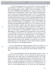 - 16 - Die Härtefallregelung in § 8 Abs. 2 MietenWoG BI~ gebe wörtlich die Grenze 19 · wieder, die das Bundesverfassungsgericht in ständiger Rechtsprechung für eine mietpreisrechtliche Inhalts- und Schrankenbestimmung des Eigentums gezogen habe. 6. Das Abgeordnetenhaus überwies den Gesetzentwurf am 12. Dezember 20 2019 vorab an den (federführenden) Ausschuss für Stadtentwicklung ·und Woh- nen, den Rechtsausschuss und den Hauptausschuss und vertagte die erste Le- sung (vgl. Abgeordnetenhaus Berlin, Plenarprotokoll 18/51, S. 6001 <6161>). a) Der Gesetzentwurf wurde im Ausschuss für Stadtentwicklung und Wohnen 21 mehrfach beraten. In der Sitzung vom 11. Dezember 2019 fand eine Anhörung von Fachleuten statt, die den Gesetzentwurf - mit unterschiedlichen Nuancen - teils für verfassungskonform (vgl. Abgeordnetenhaus Berlin, Ausschuss für Stadt- entwicklung und Wohnen, Sitzung vom 11. Dezember 2019, Wortprotokoll, S. 11 f., 14 f., 45, 51 f.), teils für grundgesetzwidrig hielten (vgl. Abgeordnetenhaus Berlin, Ausschuss für Stadtentwicklung und Wohnen, Sitzung vom 11. Dezember 2019, Wortprotokoll, S. 13 f., S. 17 ff., 22, 48, 57). Weitere Sitzungen fanden am 15. Januar 2020 (vgl. Abgeordnetenhaus Berlin, 22 Ausschuss für Stadtentwicklung und Wohnen, Sitzung· vom 15. Januar 2020, Wortprotokoll, S. 2; Inhaltsprotokoll, S. 1 f., 3, 6 ff.) und am 22. Januar 2020 (vgl. Abgeordnetenhaus Berlin, Ausschuss für Stadtentwicklung und Wohnen, Sitzung vom 22. Januar 2020, Wortprotokoll, S. 1 ff.) statt, auf denen insbesondere auch die Frage der (fehlenden) Kompetenz des Landes Berlin zum Erlass des Gesetzes zur Mietenbegrenzung im Wohnungswesen in Berlin thematisiert wurde (vgl. Ab- geordnetenhaus Berlin, Ausschuss für Stadtentwicklung und Wohnen, Sitzung vom 15. Januar 2020, Inhaltsprotokoll, S. 6 ff.; Sitzung vom 22. Januar 2020, Wortprotokoll, S. 9, 21 f.). b) Im Rahmen der Anhörung beteiligter Fachkreise und Verbände (§ 39 der 23 Gemeinsamen Geschäftsordnung für die Berliner Verwaltung <GGO II>) wurde insgesamt 23 Verbänden Gelegenheit zur Stellungnahme zum geplanten Gesetz eingeräumt. Auch hier. wurde mehrfach auf die Problematik der Gesetzgebungs- kompetenz des Landes Berlin hingewiesen; der Senat teilte die diesbezüglich ge- äußerten Bedenken im Ergebnis jedoch nicht (vgl. Abgeordnetenhaus Berlin, Drucks 18/2347, S. 40, 42). - 17 -