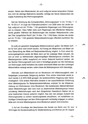 - 12 - werden. Neben dem Mietendeckel, der auch aufgrund seines temporären Charak- ters nicht die alleinige Maßnahme darstelle, verfolge der Senat insbesondere die zügige Ausweitung des Wohnungsangebots. Seit der Streichung des Kompetenztitels „Wohnungswesen" in Art. 74 Abs. 1 6 Nr. 18 GG a.F. im Zuge der Föderalismusreform I von 2006 seien die Länder be- fugt, aufgrund von Art. 70 Abs. 1 GG gesetzliche Regelungen zum Wohnungswe- .' sen zu erlassen. Dazu hätten stets auch Regelungen des öffentlichen Mietpreis- rechts gezählt. Während die Bestimmungen des sozialen Mietpreisrechts unter den Titel „bürgerliches Recht" (Art. 74 Abs. 1 Nr. 1 GG) fielen, könnten die Länder auf Art. 70 Abs. 1 GG gestützte Mietpreisbestimmungen öffentlich-rechtlicher Na- tur erlassen. Es solle ein gesetzlich festgelegtes Mietenmoratorium gelten. Die Mieten dürf- 7 ten für fünf Jahre nicht erhöht werden. Auf Antrag der Mieterinnen und Mieter sei eine Überprüfung der Miete auf Mietpreisüberhöhung möglich. In Form eines Ab- senkungsbegehrens werde die Miete dann auf die zulässige Miete reduziert, die sich an einer zu definierenden allgemeingültigen Mietobergrenze orientiere. Die Mietobergrenzen sollten ausgehend von einem Zeitpunkt bestimmt werden, als der Berliner Wohnungsmarkt noch nicht in Schieflage geraten sei. Bei Vermietung von Wohnungen dürfe höchstens die zuletzt vereinbarte Miete aus dem vorherigen Mietverhältnis verlangt werden, sofern diese die Mietobergrenze nicht übersteige. Alternativ zum Mietendeckel sei ein Moratorium mit Inflationsausgleich oder 8 festgelegter prozentualer Steigerung denkbar. Eine solche Indexmiete werde je- doch bereits in § 557b BGB geregelt; die landesrechtliche Regelung wäre hierzu inhaltsgleich. Eine and.ere Alternative bestehe in der ausschließlichen Einführung einer Mietobergrenze für Bestandsmietverhältnisse und/oder für die Wiederver- mietung von Wohnräumen ohne Moratorium. Bei bestehenden Mietverhältnissen wären Mieterhöhungen über eine noch zu bestimmende Mietobergrenze hinaus unzulässig; Mieterhöhungen nach dem Bürgerlichen Gesetzbuch blieben bis zu einer bestimmten Grenze weiterhin möglich. Das Ziel, den jetzigen Zustand des Wohnungsmarkts zu sichern beziehungsweise einzufrieren, um schädlichen zu- künftigen Entwicklungen auf dem Wohnungsmarkt rechtzeitig entgegen zu wirken, ließe sich mit einer Mietobergrenze ohne Moratorium jedoch nicht erreichen. 3. Auf der Grundlage des Beschlusses des Senats von Berlin vom 18. Juni 9 2019 legte die Senatsverwaltung für Stadtentwicklung und Wohnen_ am 30. August - 13 -
