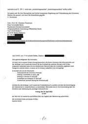 Stelter, Daphne Von: Univ.-Prof. Dr. C: Pestalozze EEE > Gesendet: Mittwoch, 21. April 2021 19:29 An: Stelter, Daphne Cc: Costa, Sergio; Univ.-Prof. Dr. Drenkhahn Kirstin; Jörgensen, Kirsten; VE; Ohr, Dieter; Trebbe, Joachim Betreff: Re: Beschlussfassung im Umlaufverfahren Sehr geehrte Frau Stelter, haben Sie vielen Dank für die Dokumente. Inhaltlich stimme ich allen Texten zu. Redaktionell rege ich, alle Dokumente mit einer identifizierenden Kopf- oder Fußzeile (zusätzlich zur bereits vorhandenen Seitenzählung) zu versehen, ö Und im Anhang | Fundstellen fiel mir auf, daß wohl in drei FN Kommata fehlen 5.4 FN 6 zwischen „genannt“ und „aber“ S.& FN 10 zwischen „erwähnt“ und „aber” 5.8 FN 12 zwischen „Quelle“ und „aber" und daß esaufS. FN 11 wohl statt „kennhtlichgemachte” „kenntlichgemachten“ heißen sollte. Ich danke sehr für ihre fürsorgliche und höchst kompetente Begleitung und Unterstützung des Gremiums, Bleiben Sie gesund, und seien Sie freundlichst gegrüßt. C. Pestalozza. Univ.-Prof. Dr. Christian Pestalozza Freie Universität Berlin Fachbereich Rechtswissenschaft Wissenschaftliche Einrichtung Öffentliches Recht Van’t-Hoff-Straße 8 D-14195 Berlin (Dahlem) tif, +49 30 Tu Am 21/4/21 um 17:16 schrieb Stelter, Daphne >: Sehr geehrte Mitglieder des Gremiums, ich habe, wie in unserer letzten Sitzung besprochen, die finalen Versionen des Schlussberichts und der Anhänge | und Il sowie den Entwurf für das Protokoll der sechsten Sitzung in die FU Box eingestellt. Außerdem habe ich eine tabellarische Übersicht über die Fundstellen, gegliedert nach Kategorien und den Seiten, in denen sie im Anhang I aufgeführt sind, hinzugefügt. Es handelt sich um die Dokumente Schlussbericht des Gremiums Final.pdf “99: