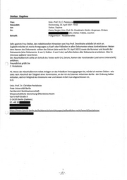 Stelter, Daphne Von: Univ.-Prof. Dr. C. Pestalozzi Gesendet: Donnerstag, 22. April 2021 15:42 An: Stelter, Daphne Cc: Costa, Sergio; Univ.-Prof. Dr. Drenkhahn Kirstin; Jörgensen, Kirsten; Ohr, Dieter; Trebbe, Joachim Betreff: Prüfgremlum - Redaktionelles Sehr geehrte Frau Stelter, den redaktionellen Hinweisen von Frau Prof. Drenkhahn schließe ich mich an. Zugleich möchte ich meine Anregungen zu Kopf- oder Fußzeilen in allen Dokumenten etwas konkretisieren: Neben dem Namen des Dokuments sollten das Datum (also wohl der 23. April 2021) sowie die Nummer und Anzahl der Dokumente (also Dokumente. 1 von 5, Doktor. 2 von 5 etc.) auf allen Seiten aller Dokumente erscheinen. Dies im Interesse späterer Leserinnen. Der Abschlußbericht sollte am Schluß des Textes wohl Ort, Datum, Namen des Vorsitzenden (und seine Unterschrift) anführen. Freundlichst grüßt Sie C. Pestalozza. PS, Wenn der Abschlußbericht nebst Anlagen an das Präsidium hinausgegangen ist, würde ich meinen Dekan - wie stets nach Abschluß der Tätigkeit einer Kommission, an der ich als Externer mitwirken durfte - der Ordnung halber mitteilen, daß ich Mitglied des Gremiums war und dessen Arbeit nun abgeschlossen ist. D.O, \ Univ.-Prof. Dr, Christian Pestalozza Freie Universität Berlin Fachbereich Rechtswissenschaft Wissenschaftliche Einrichtung Öffentliches Recht Van’t-Hoff-Straße 8 D-14195 Berlin (Dahlem) tif. +49 30 uuuuun 4? AS-