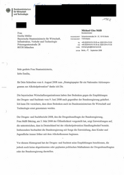 Bundesministerium für Wirtschaft und Technologie /?SDl Michael Glos MdB Frau Bundesminister Emilia Müller hausanschrift Scharnhorststraße 34 - 37,10115 Berlin Bayerische Staatsministerin für Wirtschaft, Postanschrift 11019 Berlin Infrastruktur, Verkehr und Teclmologie TEL +49 (0)3018 615-76 00 od. (0)30 2014-76 00 Prinzregentenstraße 28 fax +49 (0)3018 615-70 30 od, (0)30 2014-70 30 80538 München e-mail michael.glos@bmwi.bund.de datum Berlin,^, September2008 DATUM Sehr- geeinte Frau Staatsministerin, liebe Emilia, für Dein Schreiben vom 6. August 2008 zum „Strategiepapier für ein Nationales Aktionspro gramm zur Alkoholprävention“ danke ich Dir. Die bayerischen Wirtschaftsorganisationen haben ihre Bedenken gegen die Empfehlungen des Drogen- und Suchtrats vom 9. Juni 2008 auch gegenüber der Bundesregierung geäußert. Ich kann Dir versichern, dass diese Bedenken auch im Bundesministerium für Wirtschaft und Technologie ernst genommen werden. Der Drogen- und Suchtbericht 2008, den die Drogenbeauftragte der Bundesregierung, Frau MdB Bätzing, am 5. Mai 2008 der Öffentlichkeit vorgestellt hat, zeigt Entwicklungen auf, die unterstreichen, dass in Deutschland bei der Alkoholprävention Handlungsbedarf besteht. Insbesondere beobachtet die Bundesregierung mit Sorge die Entwicklung, dass Kinder und Jugendliche immer früher mit dem Alkoholkonsum beginnen. Vor diesem Hintergrund hat der Drogen- und Suchtrat seine Empfehlungen beschlossen, die jedoch noch keine abgestimmten oder geplanten politischen Maßnahmen der Drogenbeauftragten oder der Bundesregierung darstellen.
