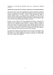 rk COMMISSION OF THE EUROPEAN COMMUNITIES % Hr% > x wu Brussels, 1990/4113 co ADDITIONAL REASONED OPINION addressed to the Kingdom of the Netherlands under Article 228 of the Treaty establishing the European Community on account of the inadequacy of the measures taken by the Kingdom of the Netherlands to comply with the judgment ofthe Court of Justice of the European Communities, dated 10.05.2001, in Case C-152/98 concerning the failure to correctly transpose Article 7 of Council Directive 76/464/EEC of 4 May 1976 on pollution caused by certain dangerous substances discharged into the aquatic environment ofthe Community