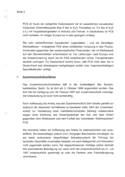 Seite 2 PCS ist heute der weltgrößte Kaliproduzent mit im wesentlichen kanadischen Kaligruben (Gesamtkapazität über 6 Mio to K,O, Produktion ca. 3,5 Mio to K,O p.a.) mit Hauptabsatzgebieten in Amerika und Fernost. In Deutschland ist PCS nicht vertreten, im übrigen Europa nur in sehr geringem Umfang. Die sehr wertstoffreichen kanadischen Lagerstätten - und die derzeitigen Wechselkurse - ermöglichen PCS einen erheblichen Vorsprung in den Produk- tionskosten gegenüber den westeuropäischen Produzenten, der im Wettbewerb auf den Überseemärkten entscheidend ist. Für Lieferungen nach Europa wird der Kostenvorsprung durch die für PCS entstehenden hohen Transportkosten deutlich verringert. Für Deutschland kommt hinzu, daß PCS nicht über die in Deutschland weit überwiegend nachgefragten (sulfat- bzw. magnesiumhaltigen) Spezialkalisorten verfügt. Zusammenschlußverfahren Das Zusammenschlußvorhaben fällt in die Zuständigkeit des Bundes- kartellamtes, Berlin. Es ist dort am 9. Oktober 1996 angemeldet worden. Das Amt hat mit Verfügung vom 28. Februar 1997 den Zusammenschluß untersagt. Die Entscheidung ist noch nicht rechtskräftig. Nach Auffassung des Amtes, das den Zusammenschluß dem Gesetz gemäß nur aufgrund der deutschen Verhältnisse zu beurteilen hatte, führt der Zusammen- schluß zur Verstärkung einer wegen einer des Erhöhung marktbeherrschenden Abwehrpotentials der Stellung Kali und insbesondere Salz GmbH gegenüber dem Wettbewerb und dem Fortfall des "potentiellen Wettbewerbers" PCS. Die Anmelder halten die Auffassung des Amtes für widersprüchlich und unzu- treffend. Sie beabsichtigen jedoch nicht, hiergegen Beschwerde einzulegen, da ein damit verbundener längerfristiger Schwebezustand die Führung der laufenden Geschäfte unvertretbar belastet und auch Belegschaft und Aktionären nicht zugemutet werden kann. Die abgeschlossenen Verträge sehen deshalb ihre automatische Beendigung vor, wenn nicht der Zusammenschluß bis 31. Juli 1997 kartellrechtlich genehmigt ist oder die Parteien eine Fristverlängerung vereinbaren,