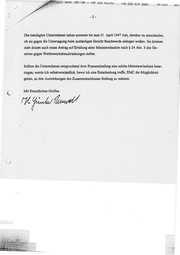 +43 228 615 2684 NR. 543 vor Die beteiligten Unternehmen haben nunmehr bis zum 01. April 1997 Zeit, darüber zu entscheiden, ob sie gegen die Untersagung beim zuständigen Gericht Beschwerde einlegen wollen. Sie können statt dessen auch einen Antrag auf Erteilung einer Ministererlaubnis nach & 24 Abs. 3 des Ge- setzes gegen Wettbewerbsbeschränkungenstellen. Sollten die Unternehmen entsprechend ihrer Pressemitteilung eine solche Ministererlaubnis bean- tragen, werdeich selbstverständlich, bevorich eine Entscheidung treffe, EMC die Möglichkeit geben, zu den Auswirkungen des Zusammenschlusses Stellung zu nehmen. L Mit freundlichen Grüßen Hl!