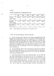 Tabelle 1: Potash Corporation of Saskatchewan Inc. | 1991 1992 1993 1994 1995 1996 | Umsatz 206,8 214,1 212,2 363,1 856,1 1.403,9 91,2 159,5 209,0 (Mio. US-$) Ergebnis 31,3 39,8 44,7 (Mio. US-$) Beschäftigte am 31.12. Quelle: 1.227 1 1.415 1.818 1.781 4.579 4.490 | Potash Corporation of SaskatchewanInc., Annual Report 1996 2. Kali und Salz Beteiligungs Aktiengesellschaft 9. Die K+S AG wurde 1889 unter der Firma Aktiengesellschaft für Bergbau und Tiefbohrung zu Goslar a. H. gegründet. Nach diversen Um- firmierungen, Neustrukturierungen und Sitzverlegungen im Verlauf ihres Bestehens firmiert die Gesellschaft seit Anfang 1994 unter Kal und Salz Beteiligungs Aktiengesellschaft und hat ihren Sitz in Kassel. Seit 1969 gehört das Unternehmen über die Guano-Werke GmbH zu 76,4 % zum BASF-Konzern. Die verbleibenden 23,6 % des Grundkapitals befinden sich in Streubesitz. 10. Im Geschäftsjahr 1993 war das Unternehmen Gegenstand umfassen- der Neuordnungsmaßnahmen, die im wesentlichen Folge der Zusammen- führung der Kali- und Salzaktivitäten der K+S AG und der Mitteldeut- schen Kali AG.(MdK) waren. Il. Die Kaliproduktion in den neuen Bundesländern war bis 1993 bei der MdK zusammengefaßt. Alleinaktionärin war die Treuhandanstalt. Im Dezember 1993 stimmte die Europäische Kommission der Bildung eines Gemeinschaftsunternehmens der K+ S AG und der MdK zu. Die MdK wurde in eine GmbH umgewandelt, der Name in Kali und Salz GmbH (K+S GmbH) seändert. Die Treuhandanstalt erhielt einen Anteil von 49 % am im Zuge der Umstrukturierungen erhöhten Stammkapital der